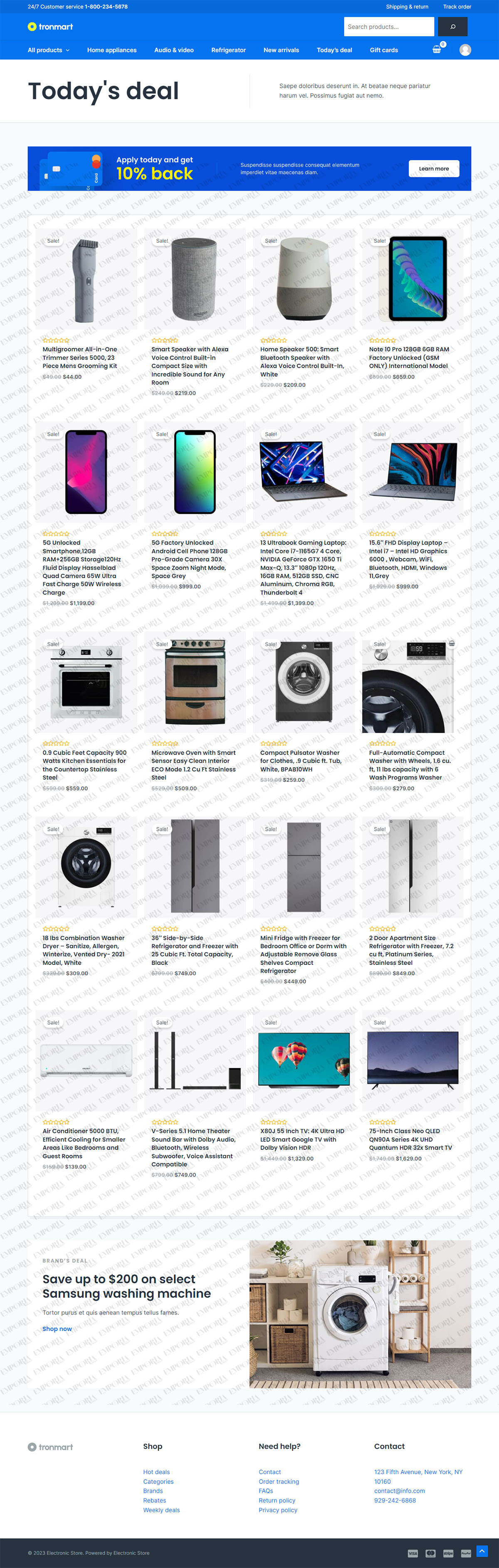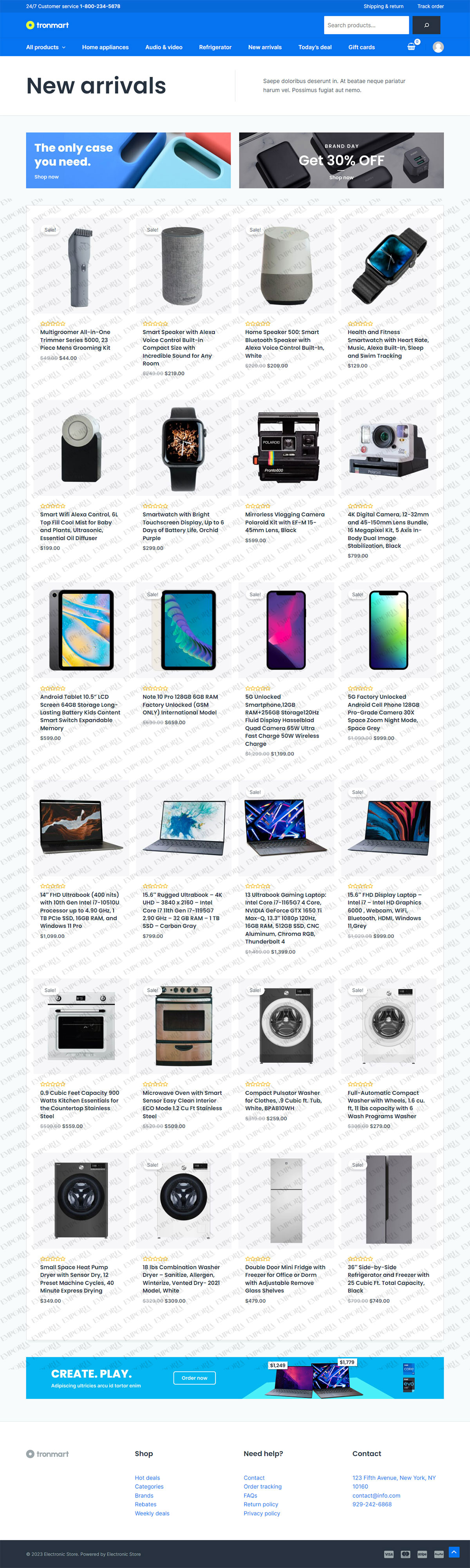 The Electronic Store template is a modern eCommerce template designed to appeal to the widest audience. The main page opens with an attractive header with search, a cart and navigation while a large hero image sets the scene nicely.