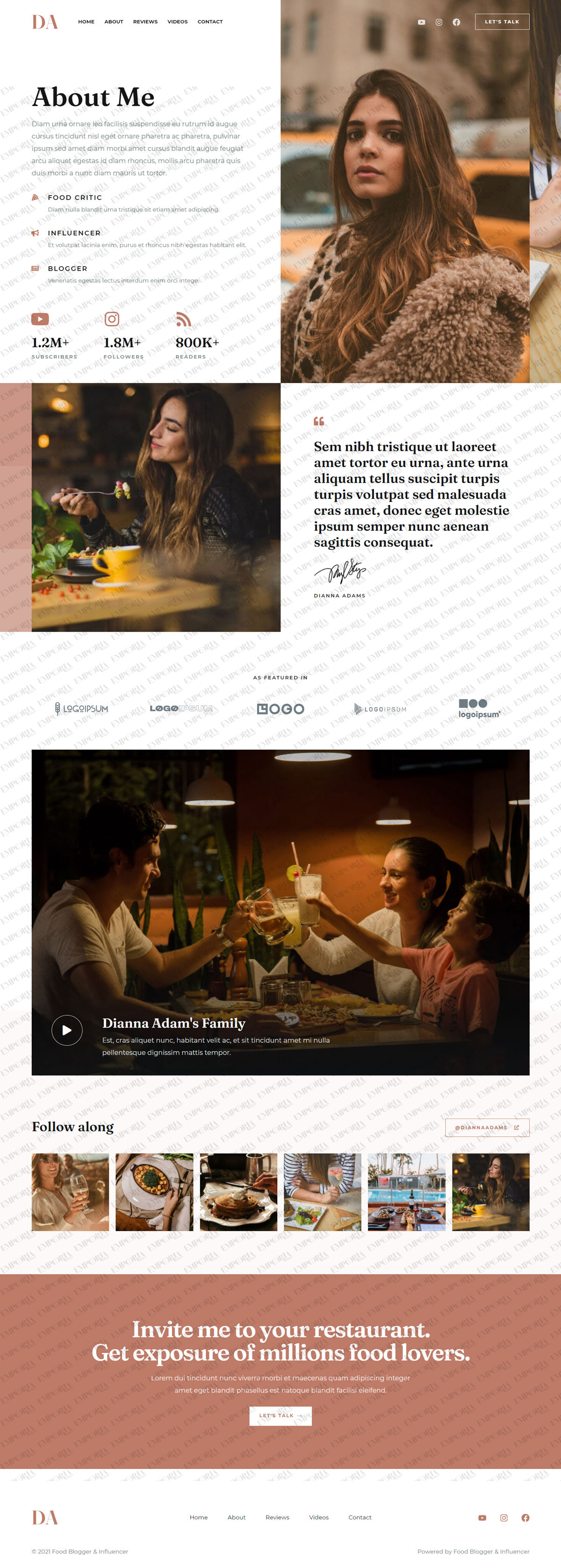 Are you a food blogger, an influencer, or both? Want to build a website and become an authority in your niche? We’ve got you covered with this Food Blogger & Influencer website template.