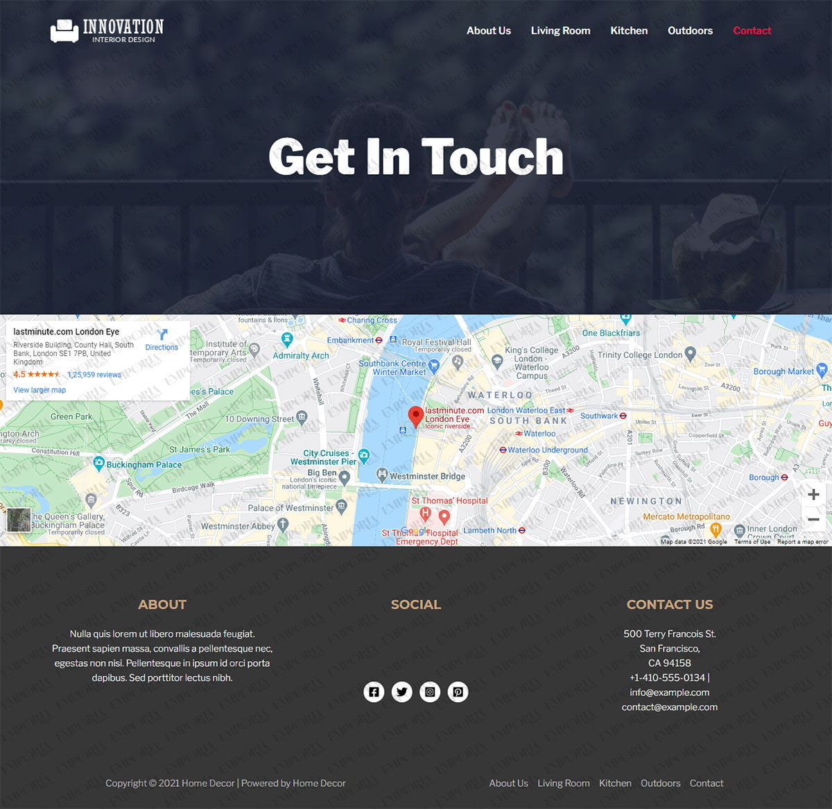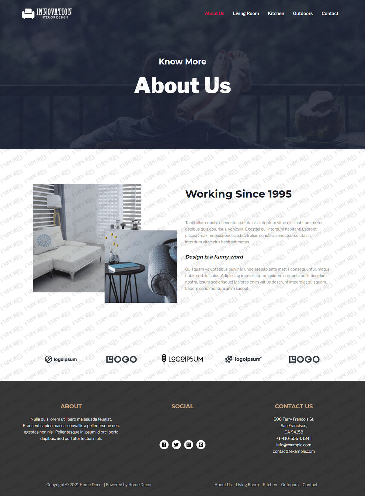The Home Décor template has a stark, crisp appearance that screams modernity from the off. Sans serif fonts, dark and light areas and a bold contrast color are only the beginning.