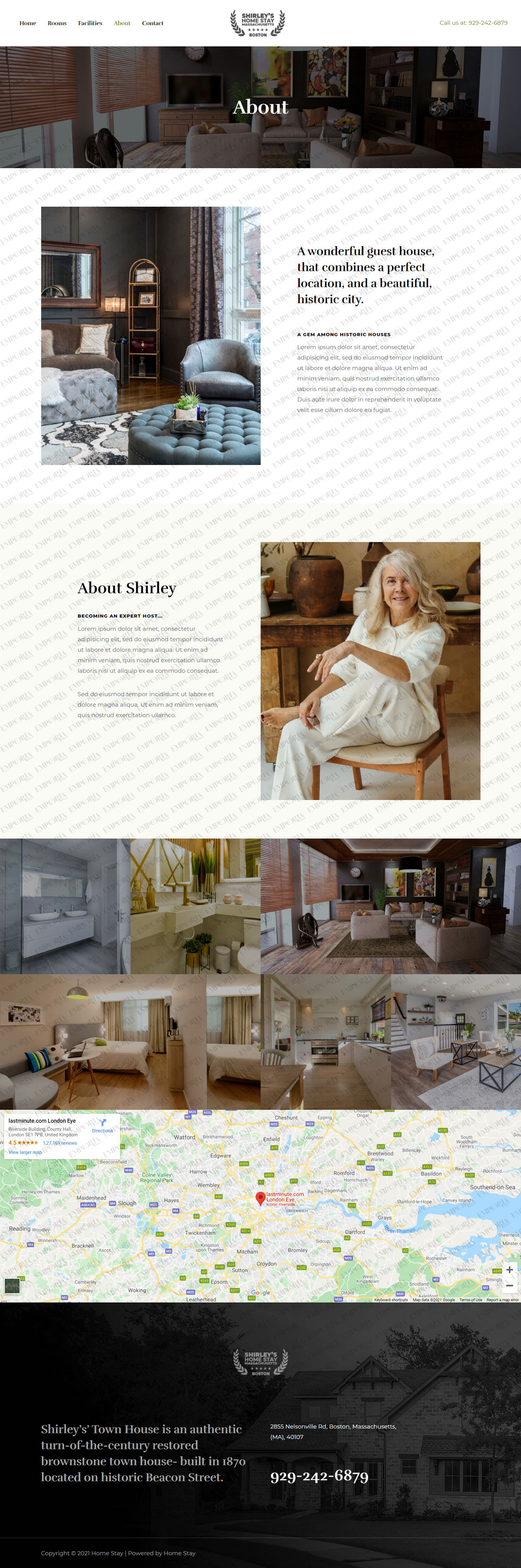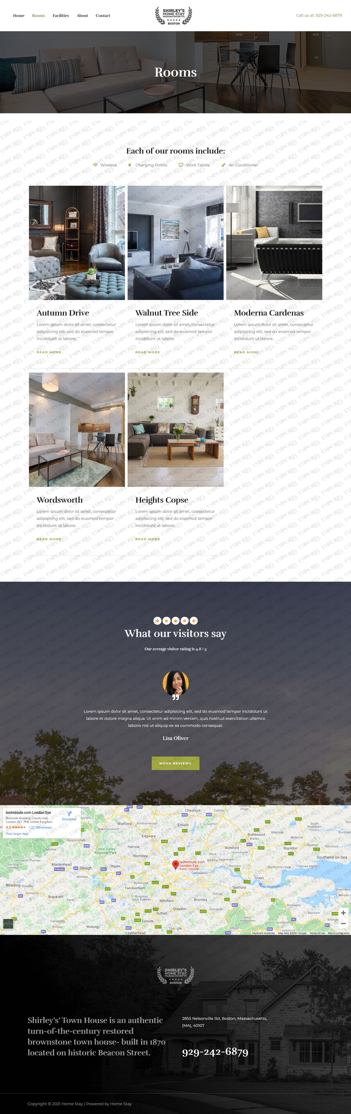 The design transports you to the serenity and tranquility of living in the countryside. The template has everything you need to build an informative and engaging website, from showcasing the rooms to the property facilities.