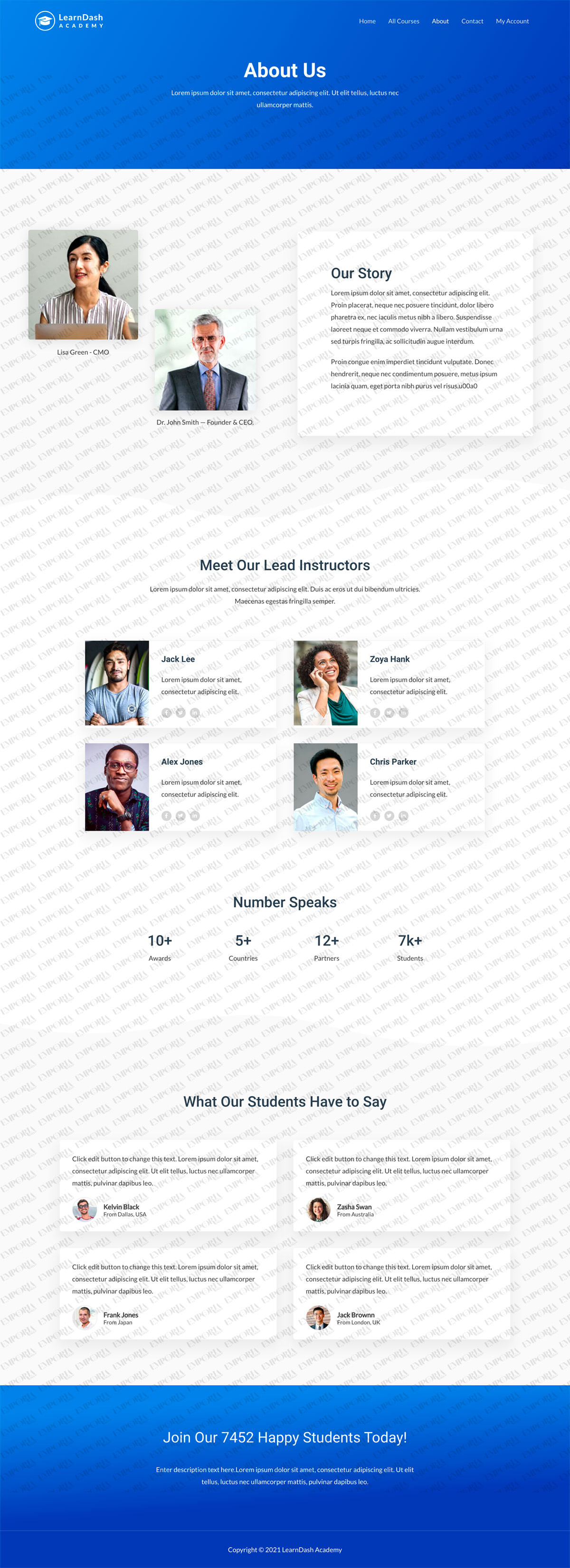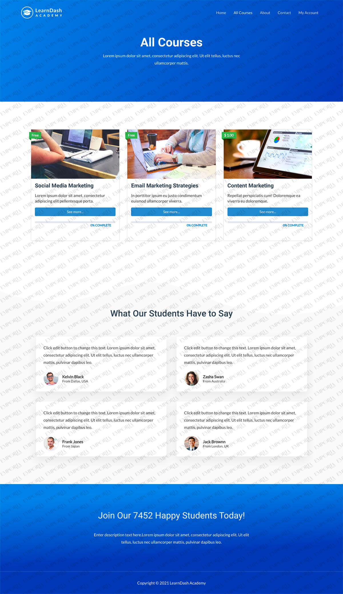 Want to create an online course platform using the most popular WordPress LMS plugin, LearnDash? Our LearnDash Academy website template is just what you need. Coupled with the LearnDash plugin, you can create a course from scratch or use one of our professionally pre-built templates to start quickly.