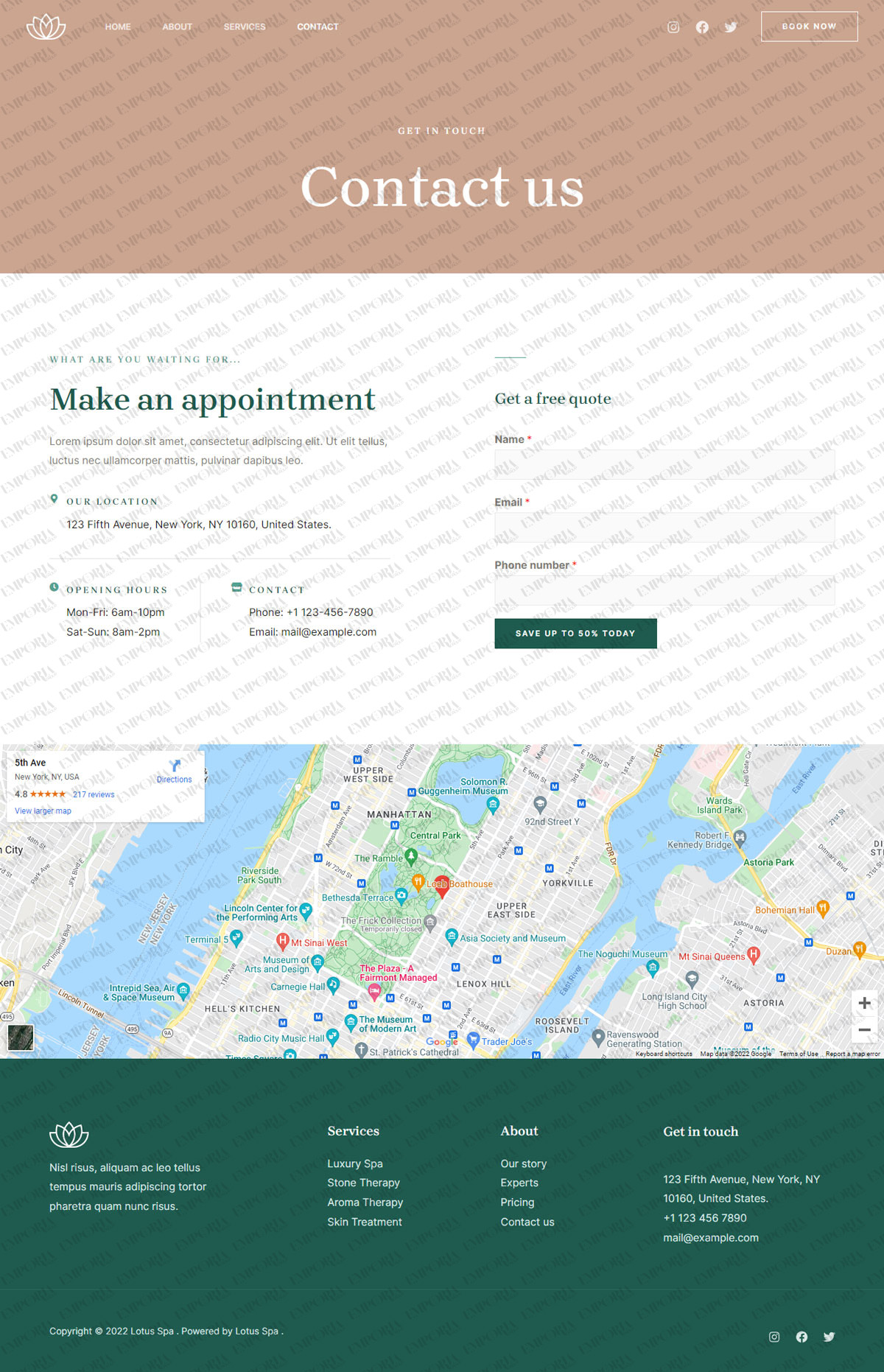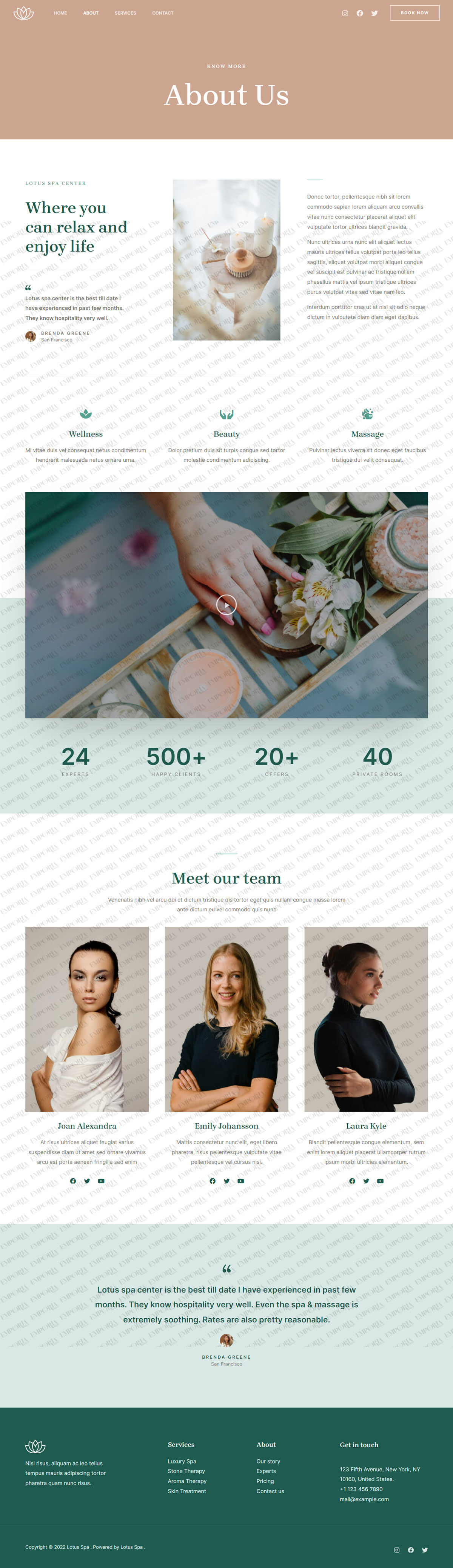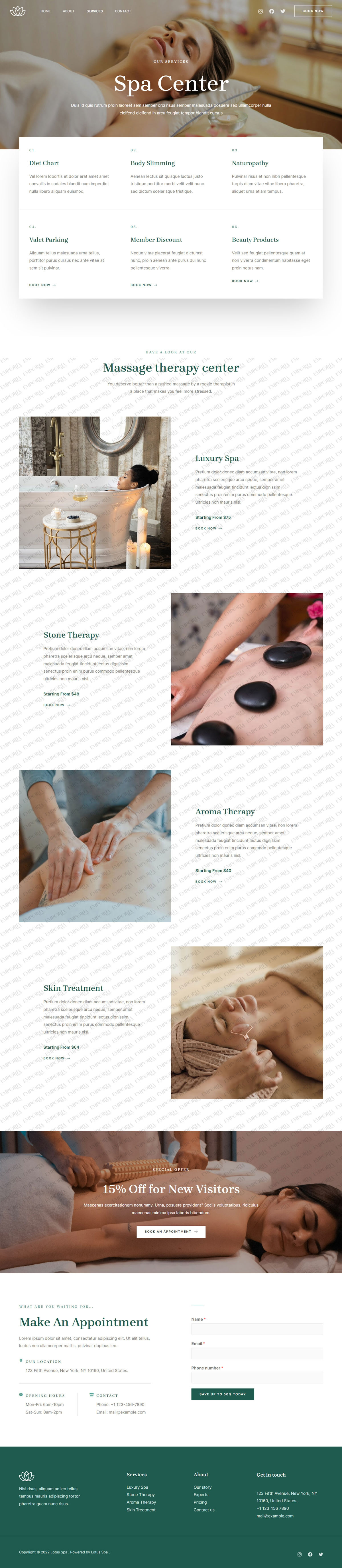 The Lotus Spa template is a feminine theme with a lovely blend of images and colors that suits the niche perfectly. The design is calm, confident and welcomes you as soon as you land.