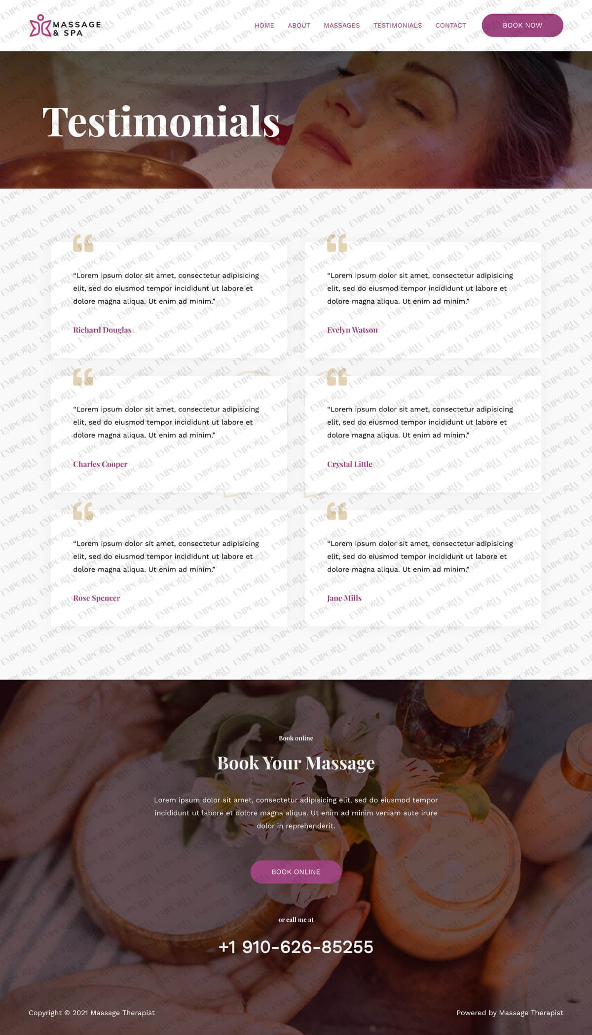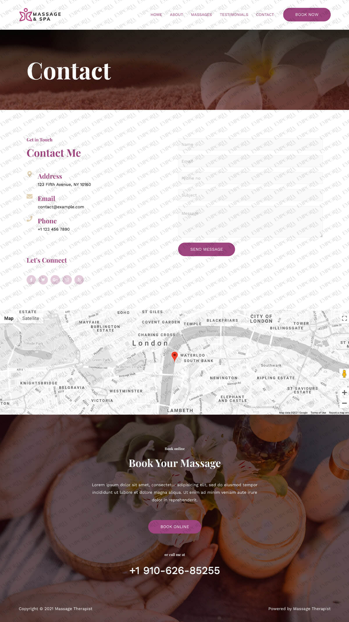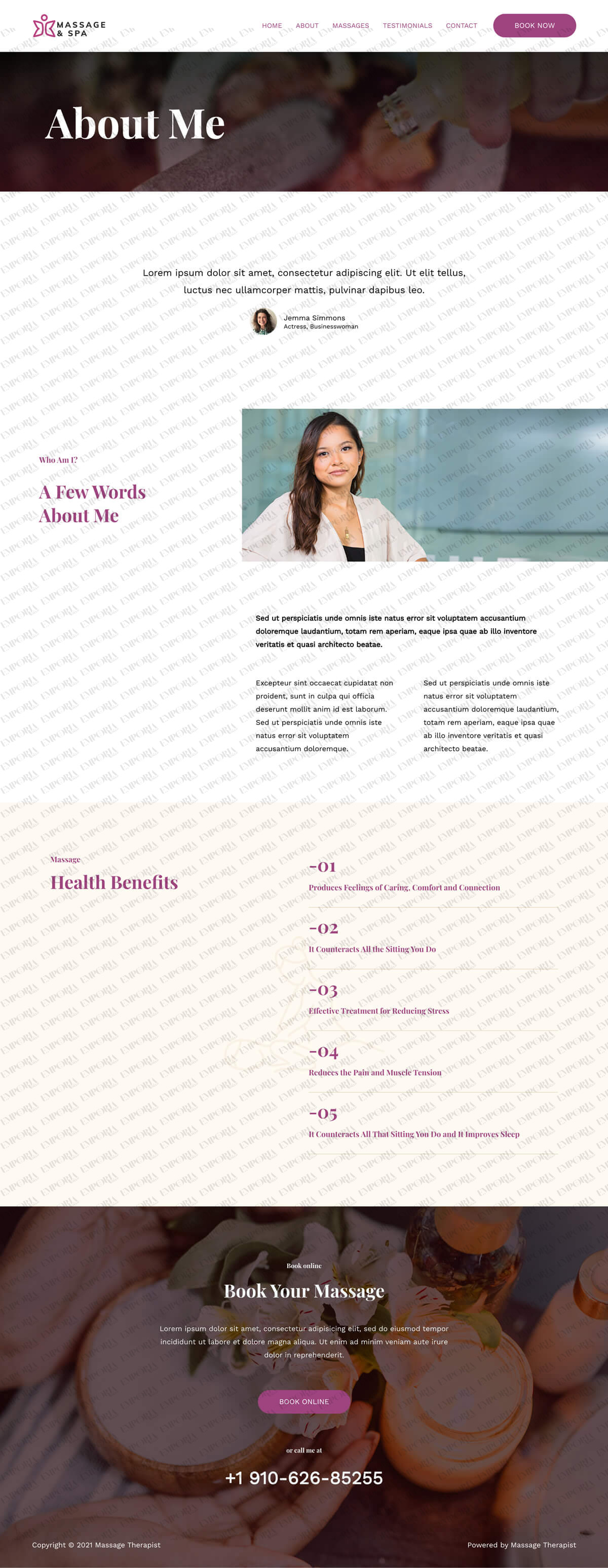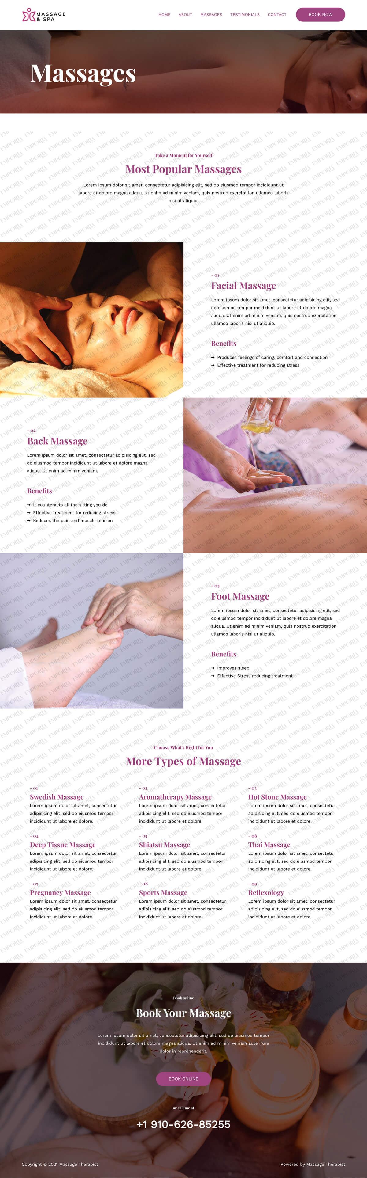 The Massage Therapist template has that serene feel you want to evoke in future clients alongside the information you need to provide to convert them into customers.