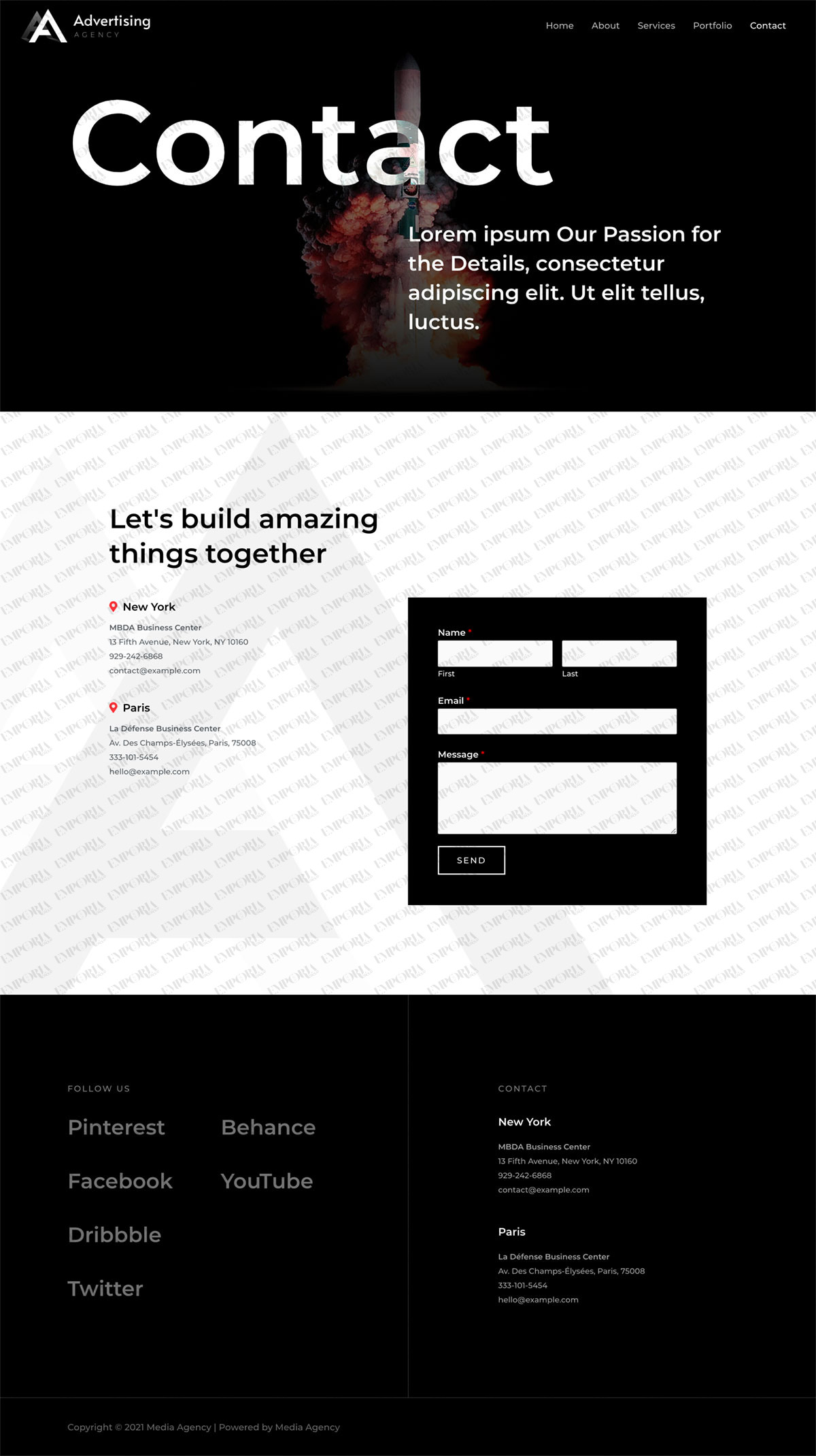The template includes typical content areas and supplementary pages you would need along with the flexibility to change anything you see on the page using a page builder. It’s an excellent option for any agency!