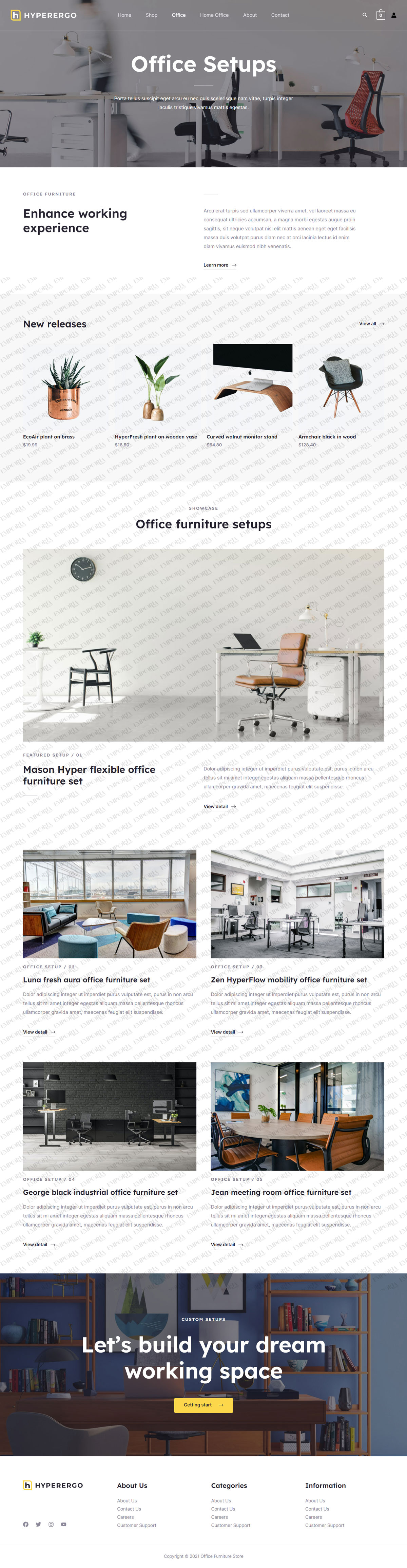 Include your entire range of quality office furniture products, such as desks, chairs, storage units, and more. The individual product pages allow you to accept customer reviews and show related products.