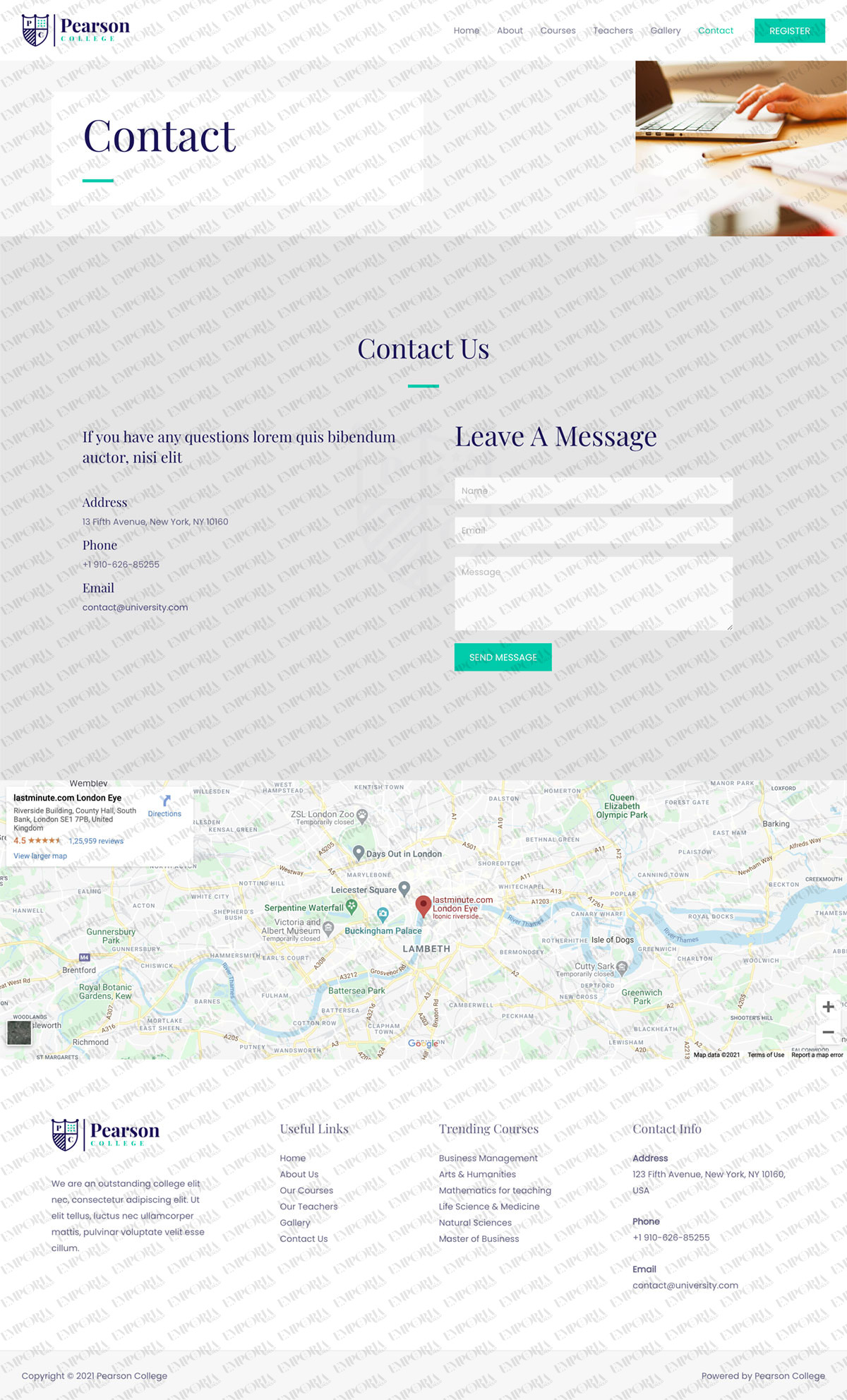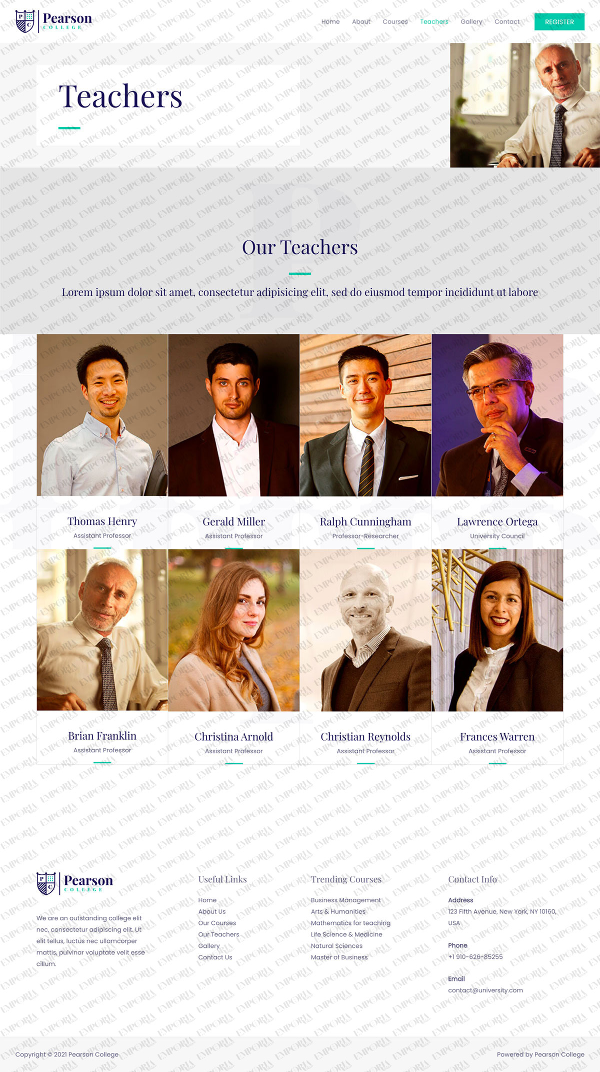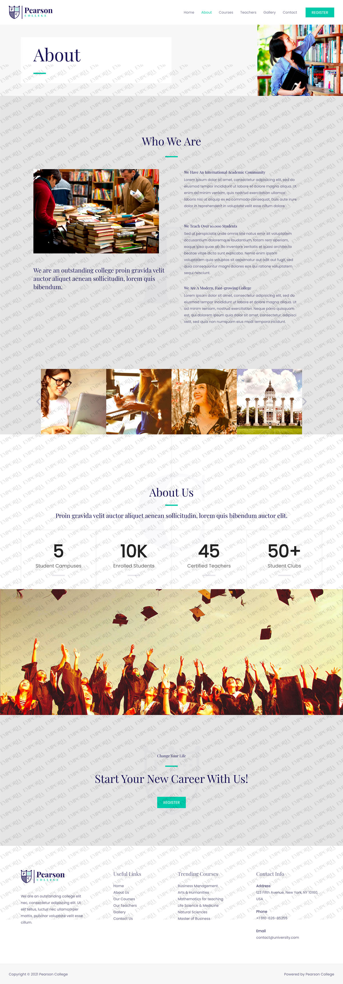 The Pearson College template is a calm, confident design that uses lots of whitespace and images to help tell the story. There are also some nice effects, inspiring fonts and a nice green contrast color to highlight specific areas.