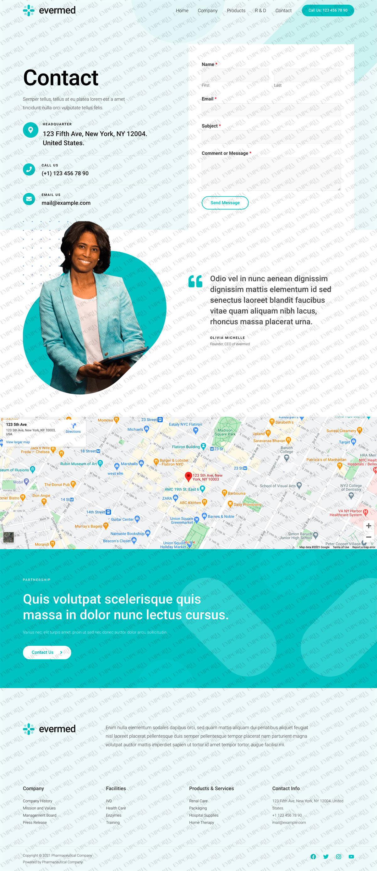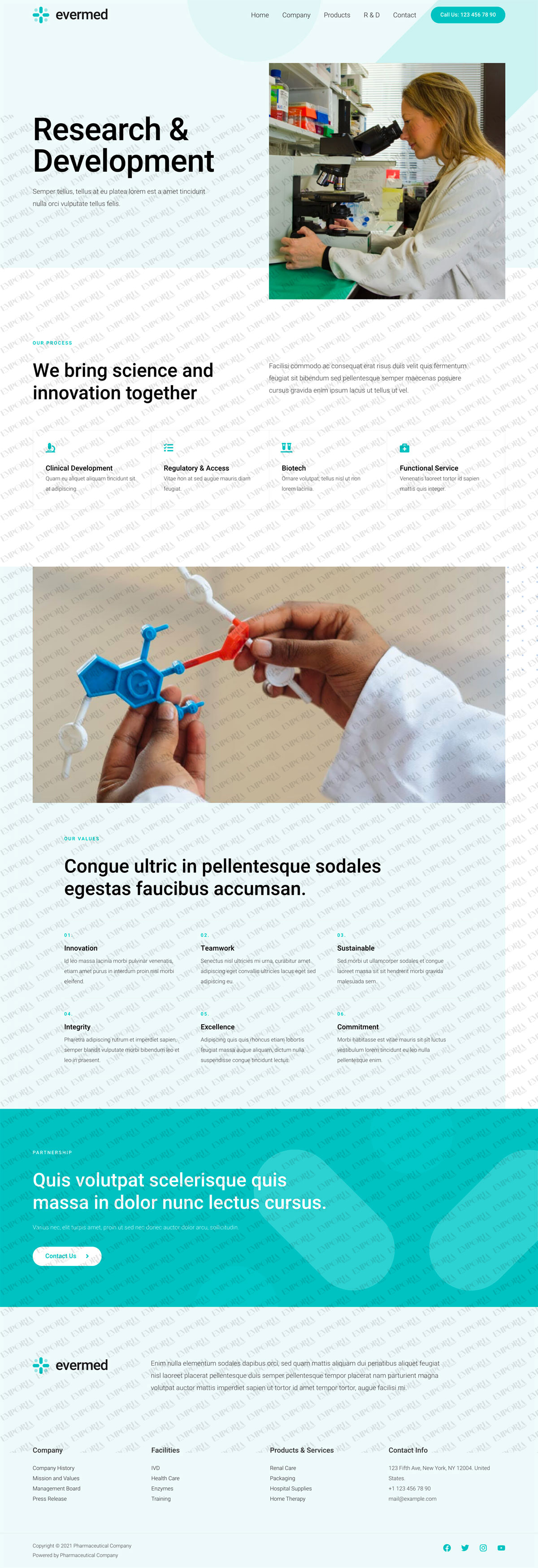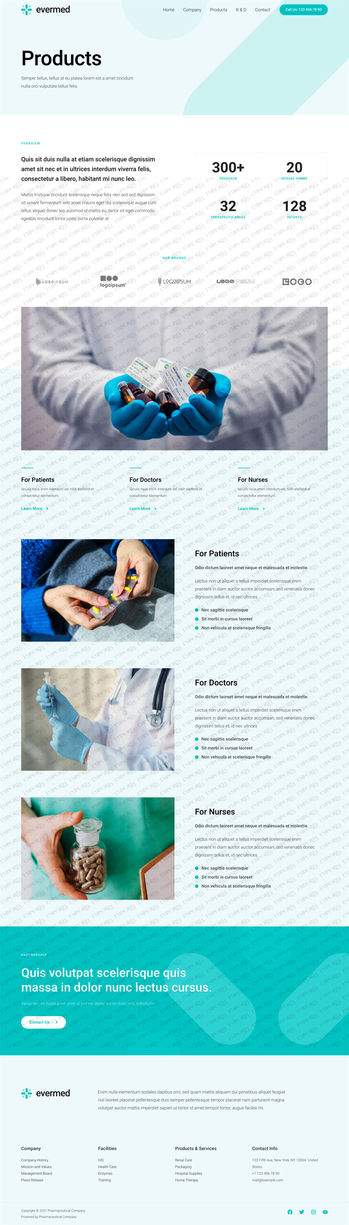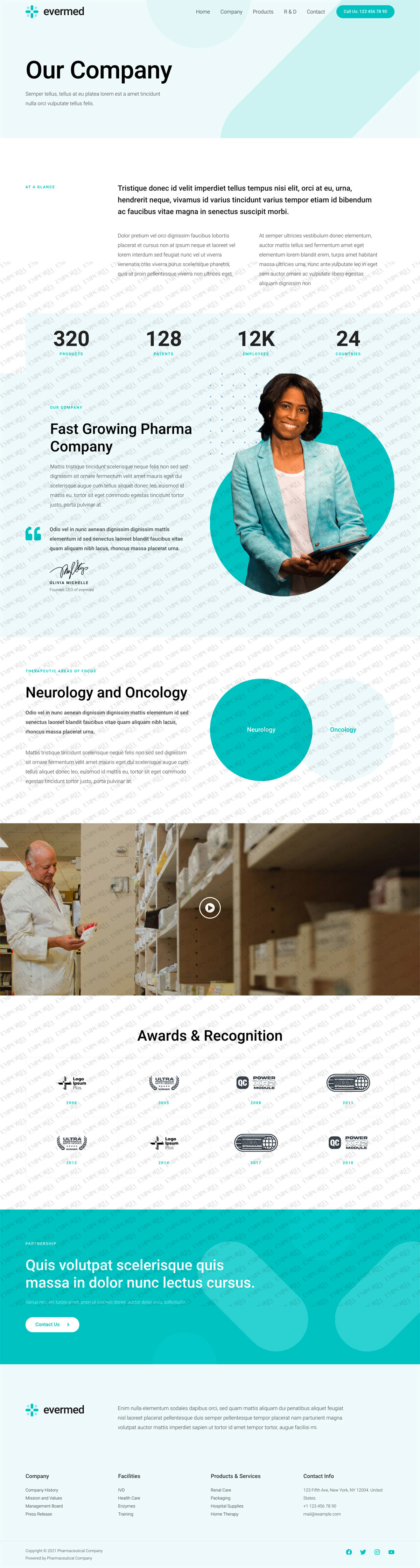 The Pharmaceutical Company template has a light, inclusive feel that uses colors related to the medical feel to inspire confidence and communicate meaning. Modern fonts, animations and quality images combine with customizable content areas to tell your story.