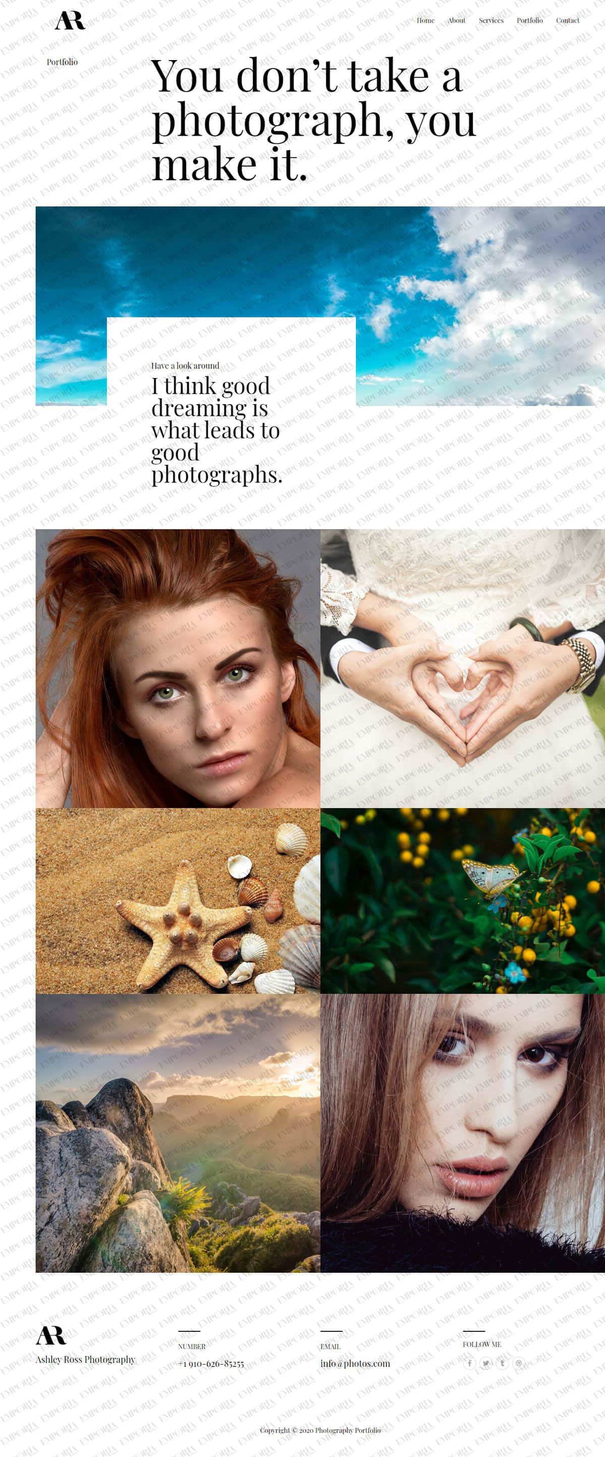 The Photography Portfolio website template uses minimal design to give your images the space to shine. The template has lots of space for images, including an oversize image slider at the top. It’s ideal for photographers, artists and other creatives.