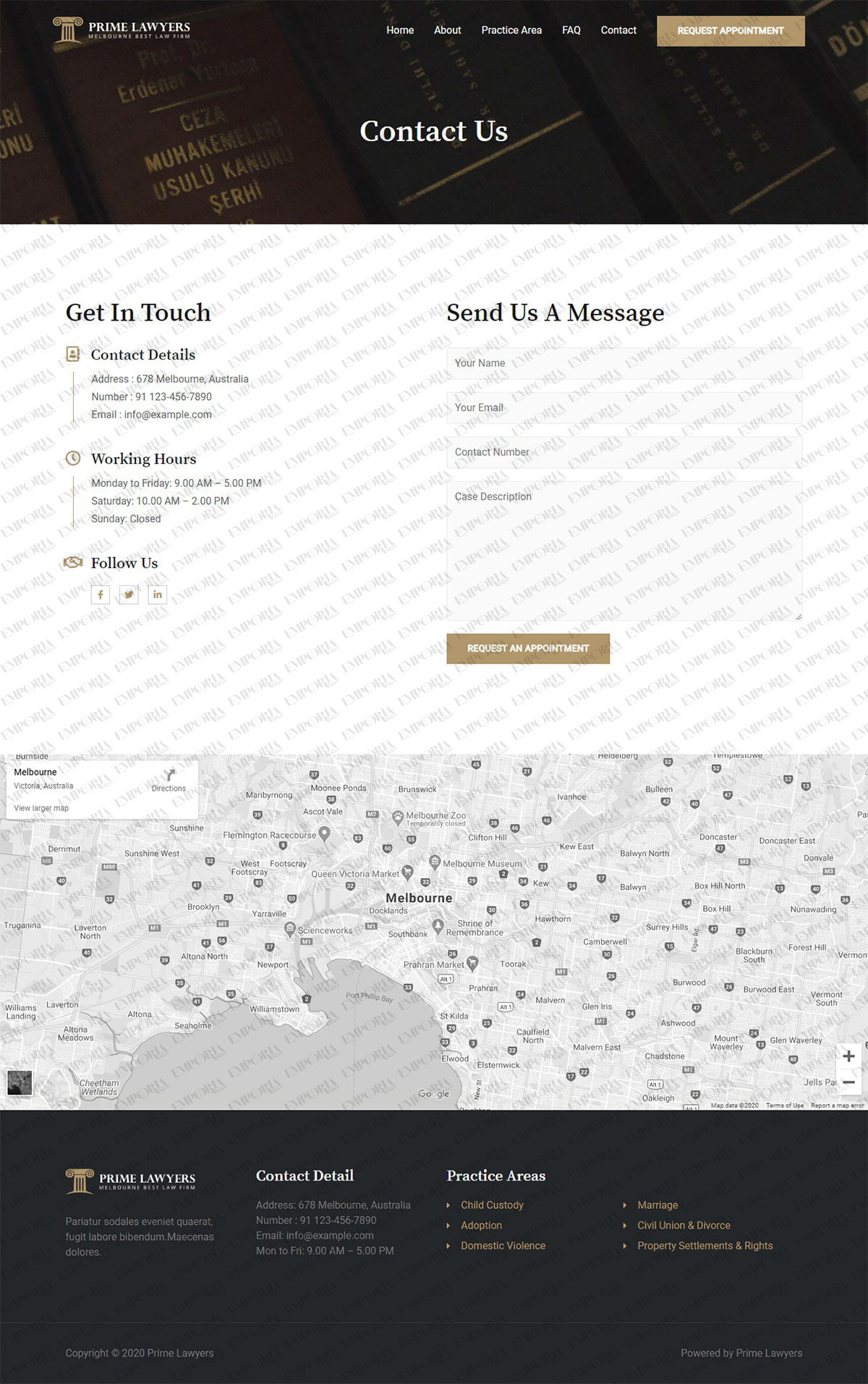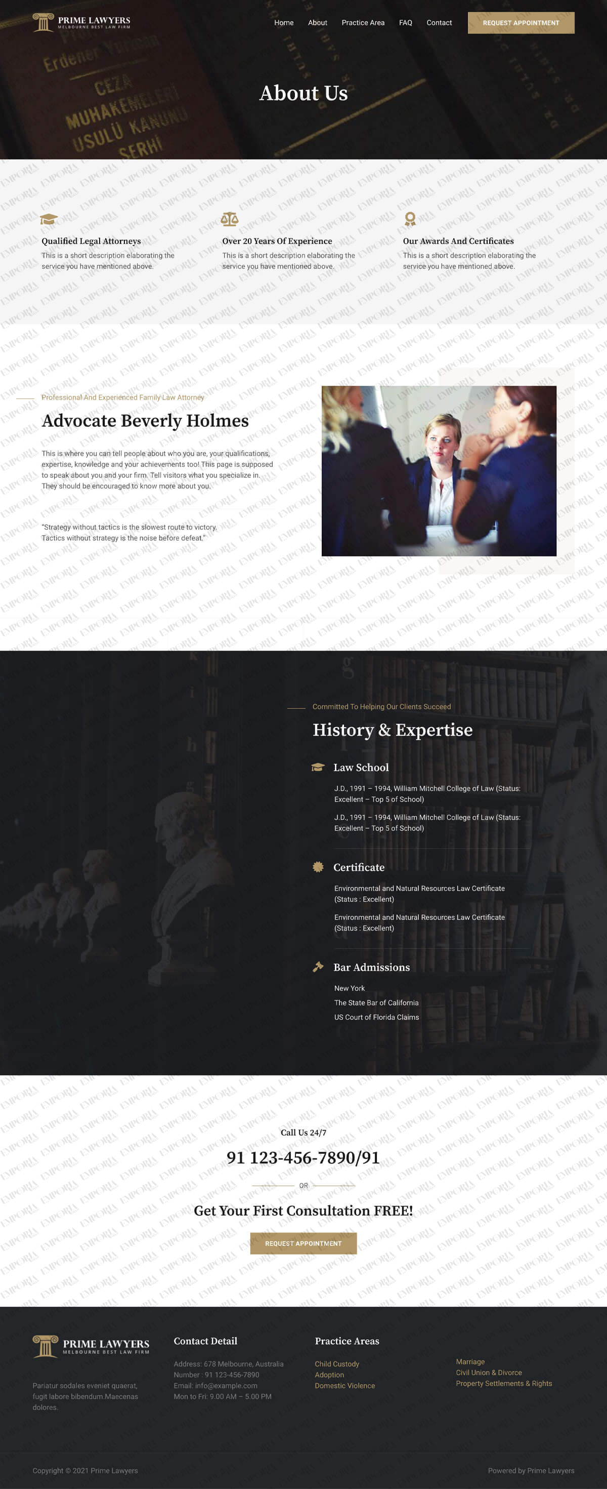The Prime Lawyers template delivers that professional gravity your firm deserves from the moment you open the page. It’s a professionally-designed template complete with sober colors, lots of content areas and service sections and plenty of space to outline your areas of expertise.