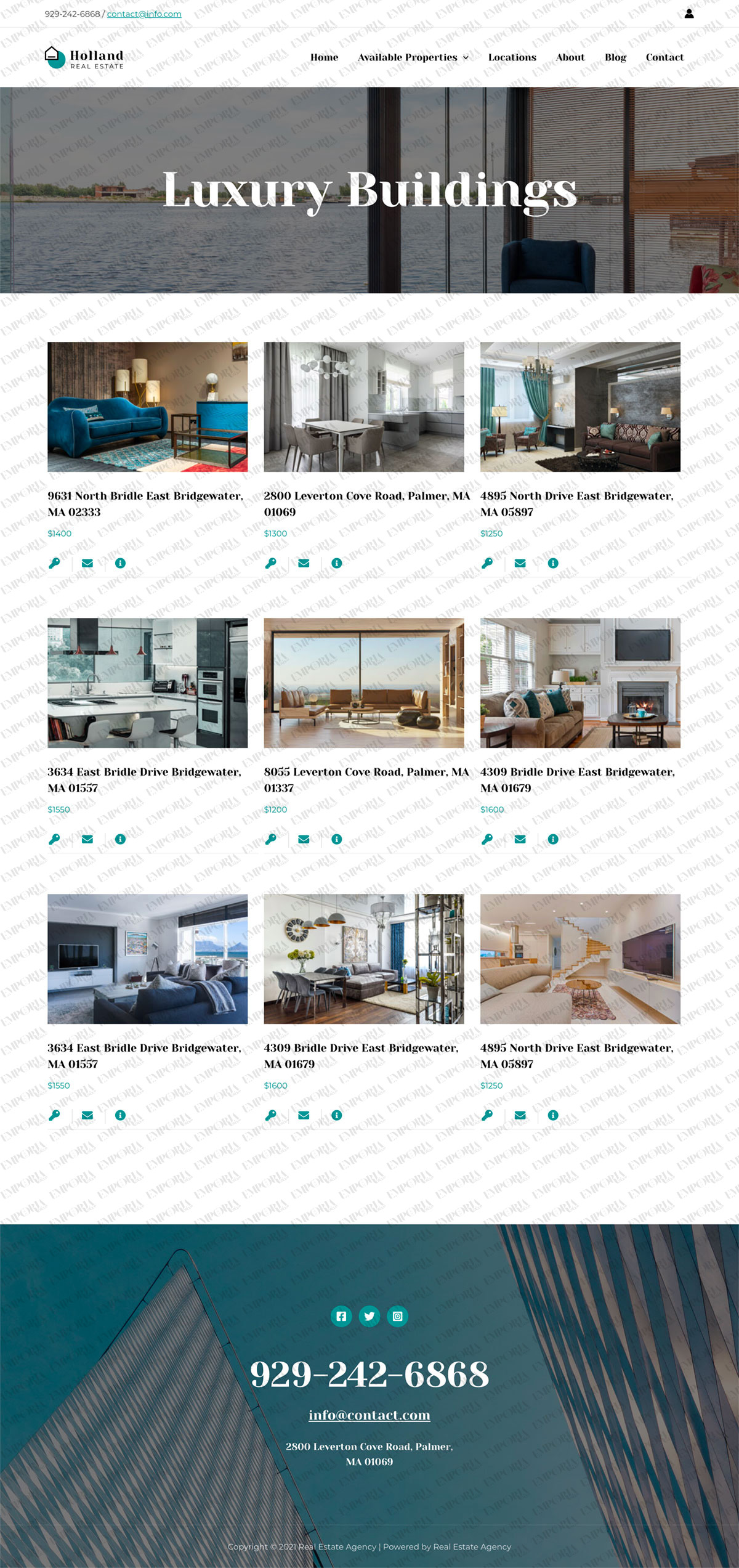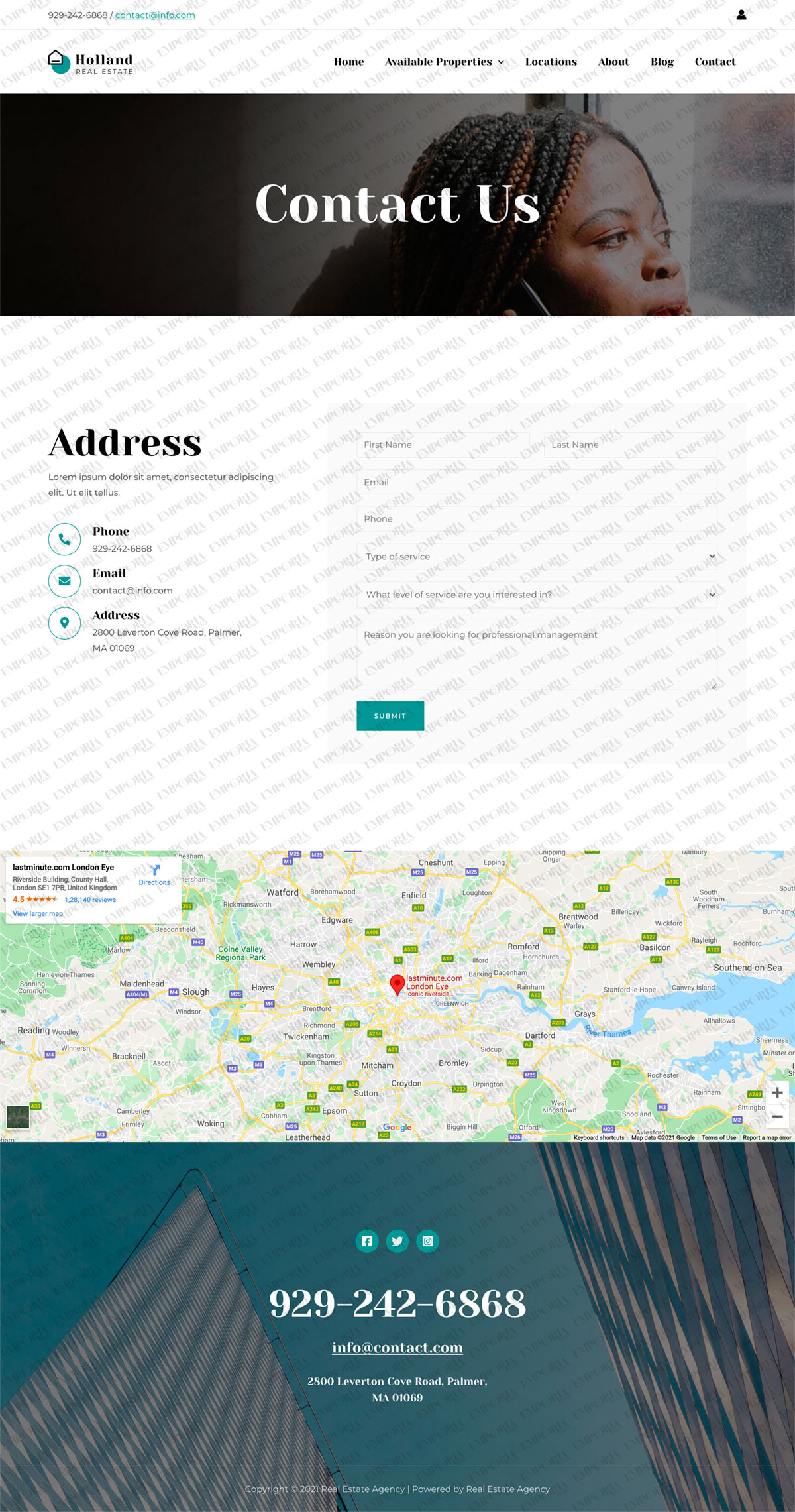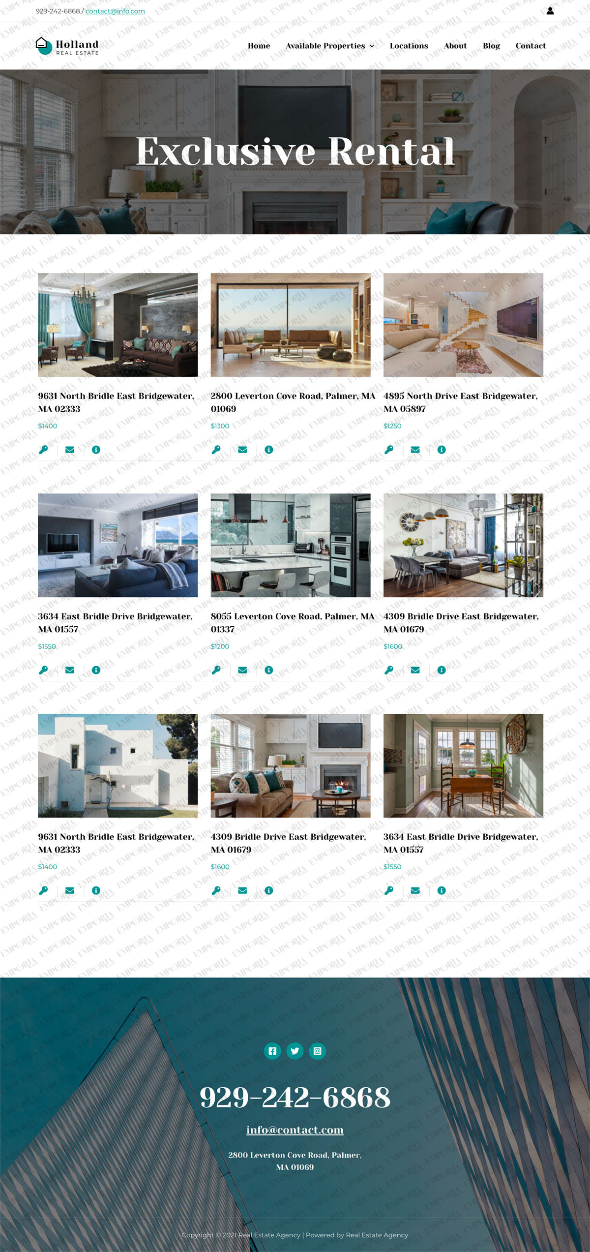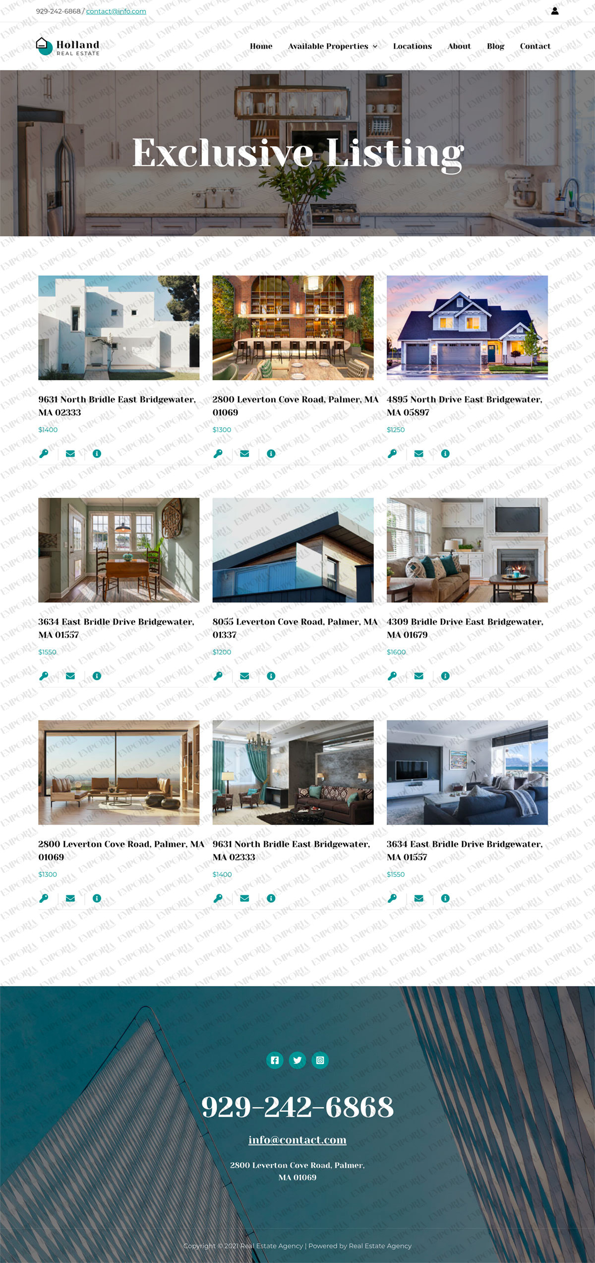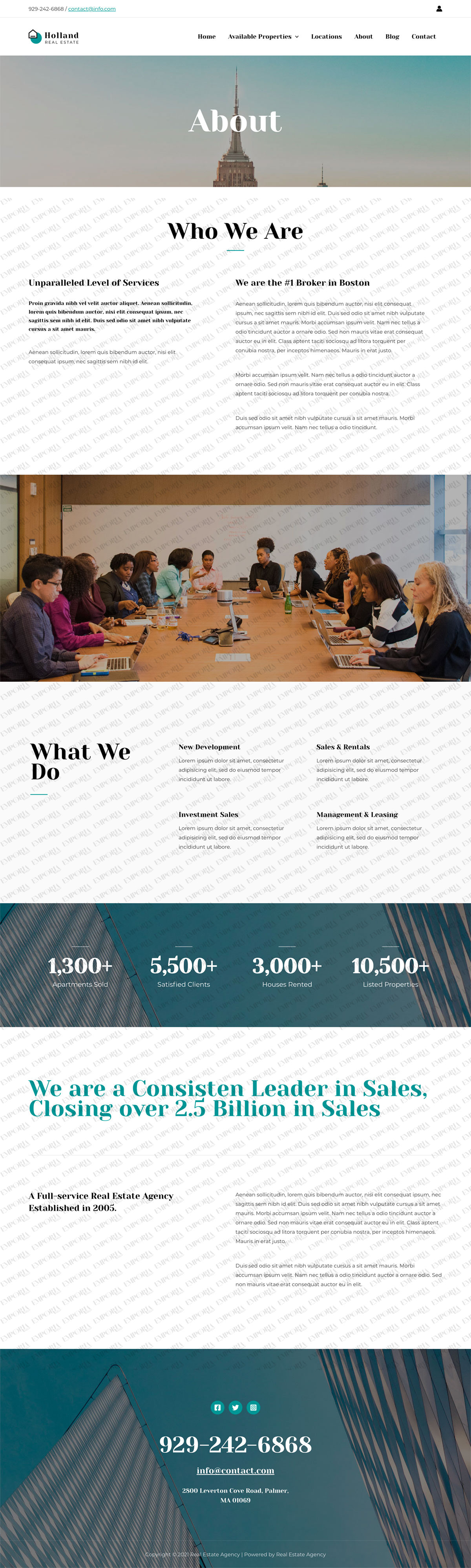 The homepage includes lots of content areas to outline your services and a featured listing section to showcase properties, it also includes a contact form, testimonials section and clear navigation. Everything you see can be easily customized to fit your exact needs too!