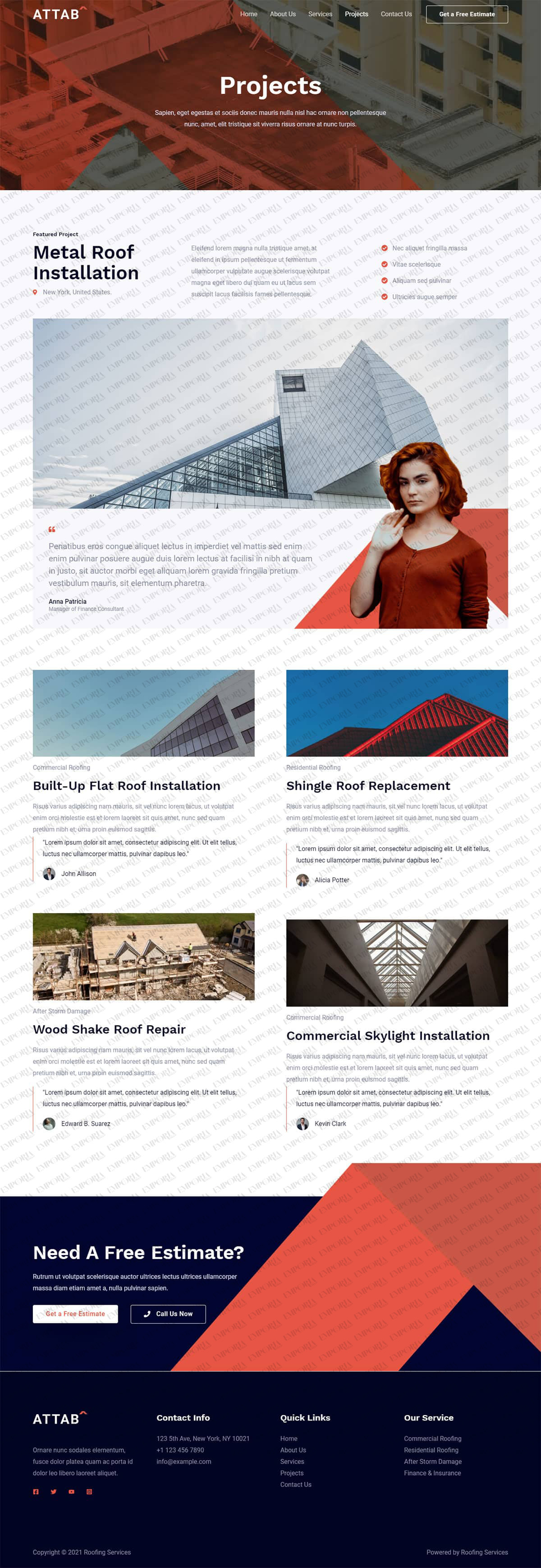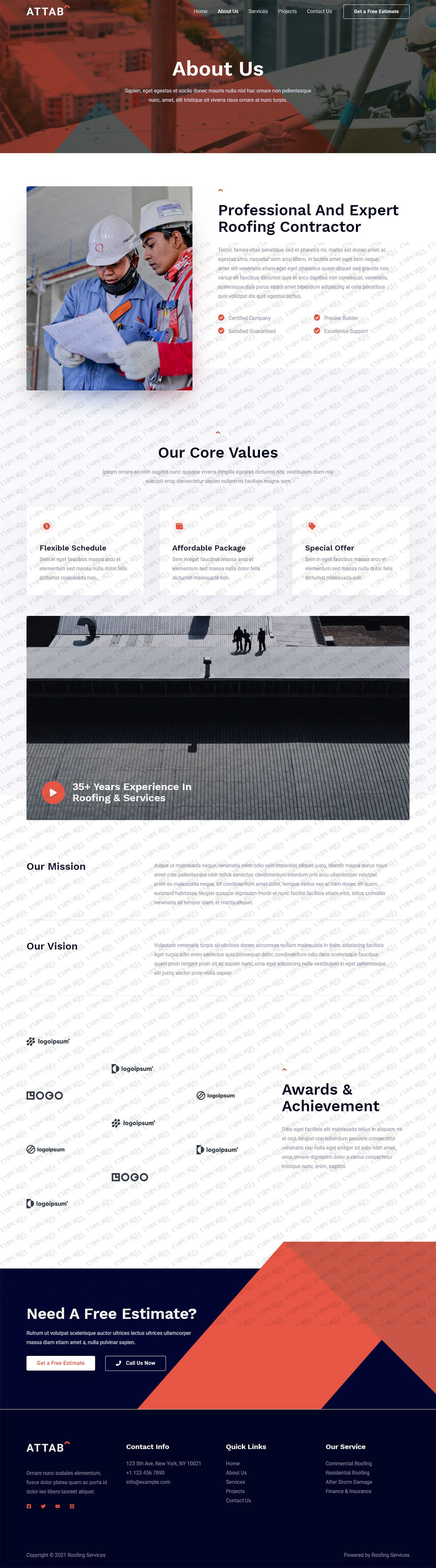 The Roofing Services web template is a bright and breezy business design that welcomes you with open arms. It opens with a fullscreen image with bright colors and white headline that sets the scene perfectly. It could be used for literally any type of business.