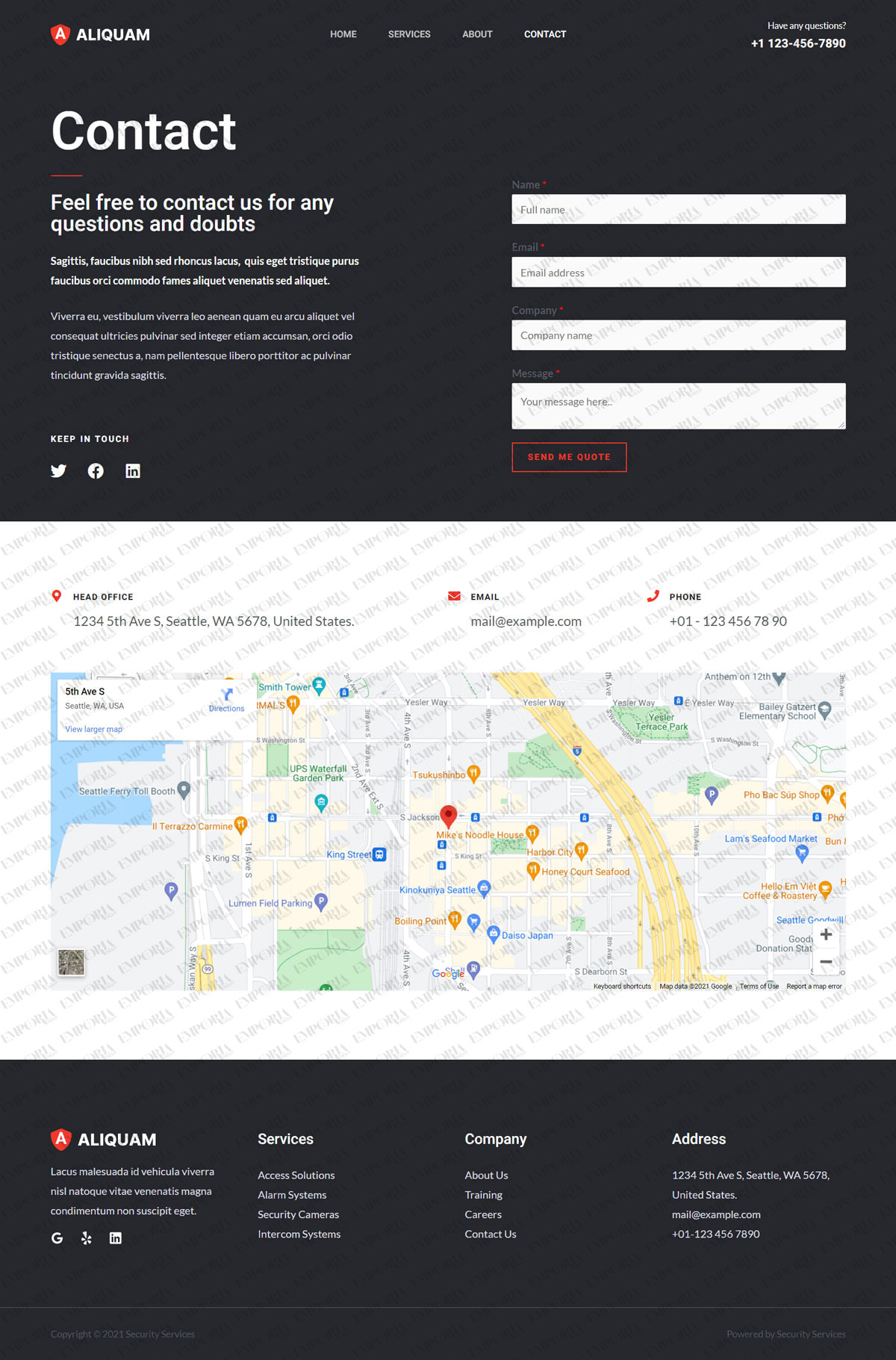 The design uses modern fonts and an attractive flat design with great spacing, good use of white space and all the features you would expect to see on a security website.