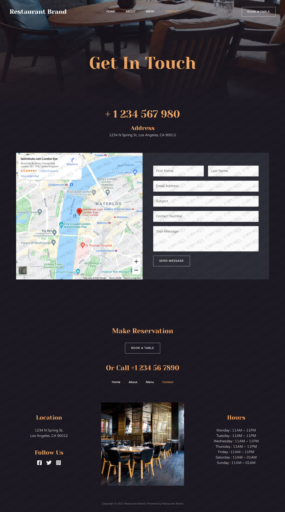 Showcase your mouth watering menu, facilitate online reservations, and include customer reviews, among other things, on your website. Additionally, you can include your working hours and the ambiance photos to help connect with your customers.