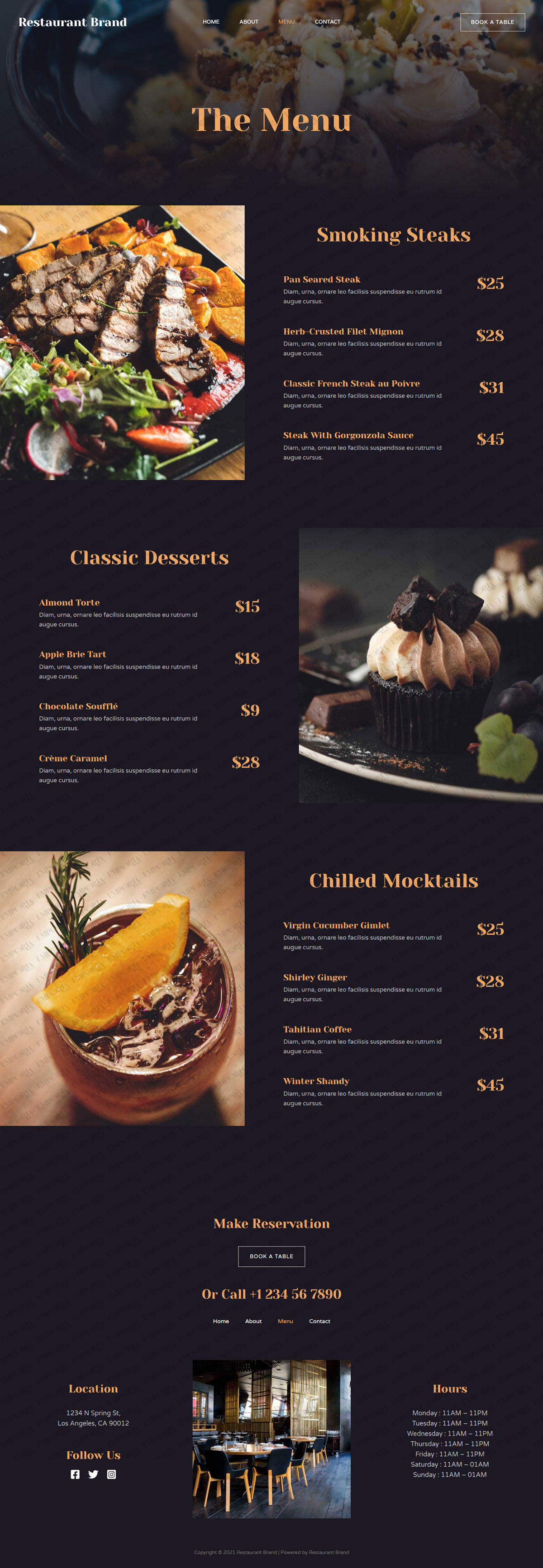 Do you own a steak house? Want to promote your dine-in and accept orders online? If so, the Steak House web template is perfect for you. The design is attractive and ensures your customers engage with your cuisine instantaneously.