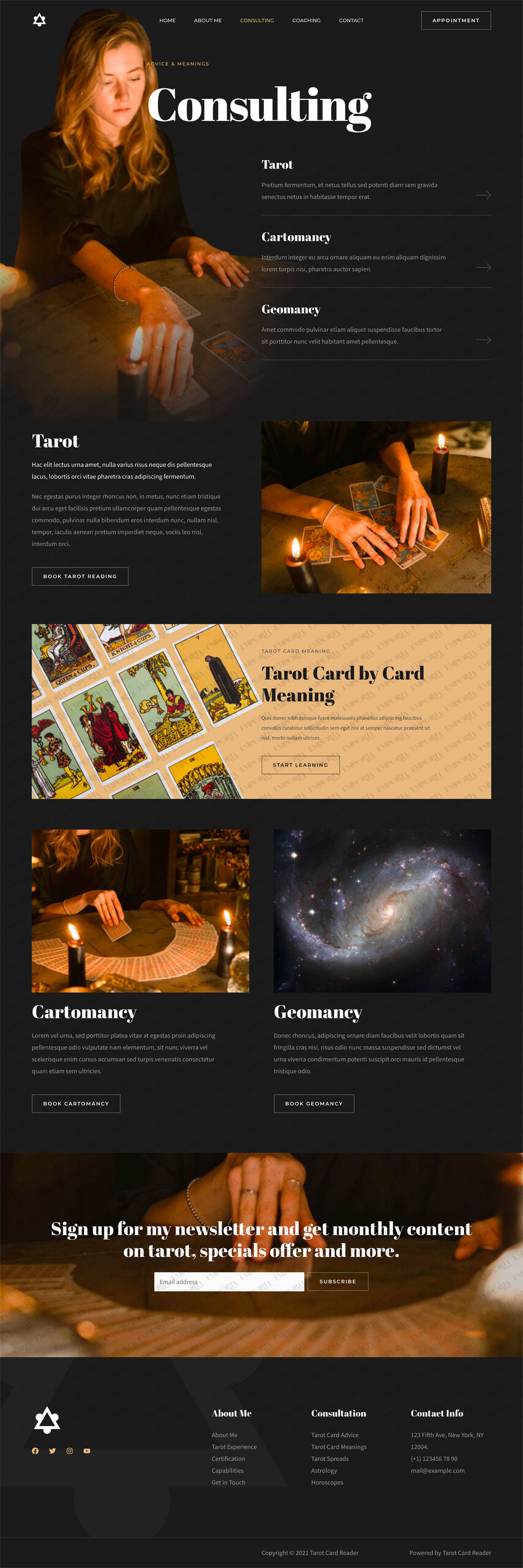 Attention tarot card readers, psychic readers, and astrologers. Here’s the perfect template to offer reading and consultancy services online. The template is well designed and looks every bit a tarot reader’s website.