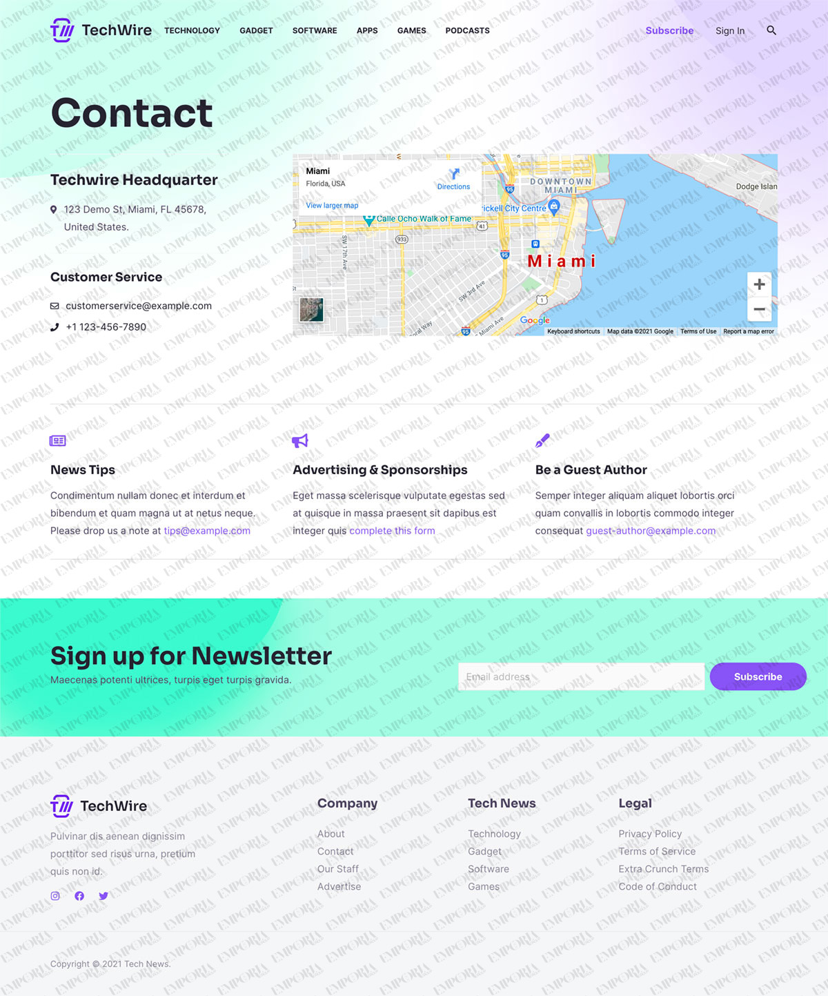 The template features a newsletter subscription form that will let you build your newsletter list quickly and easily.