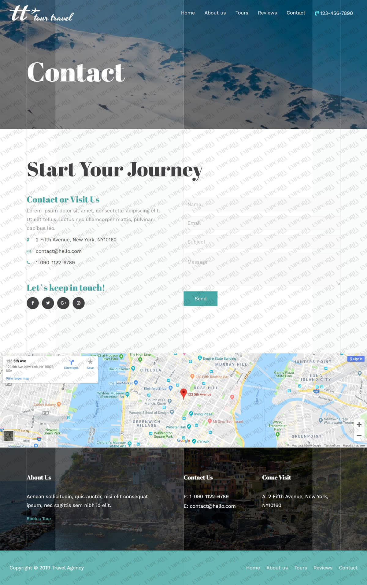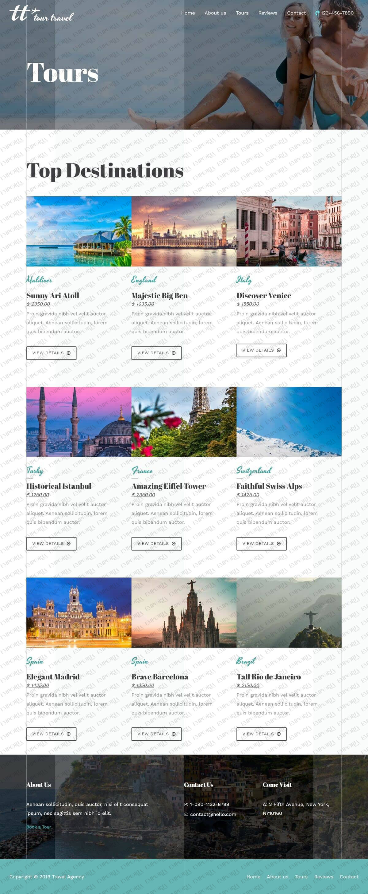 The template uses a mixture of fonts and images to create atmosphere while also keeping things light with whitespace. It’s a lovely blend of strong design and relaxation that makes pages a pleasure to browse, ideal for an industry like travel.