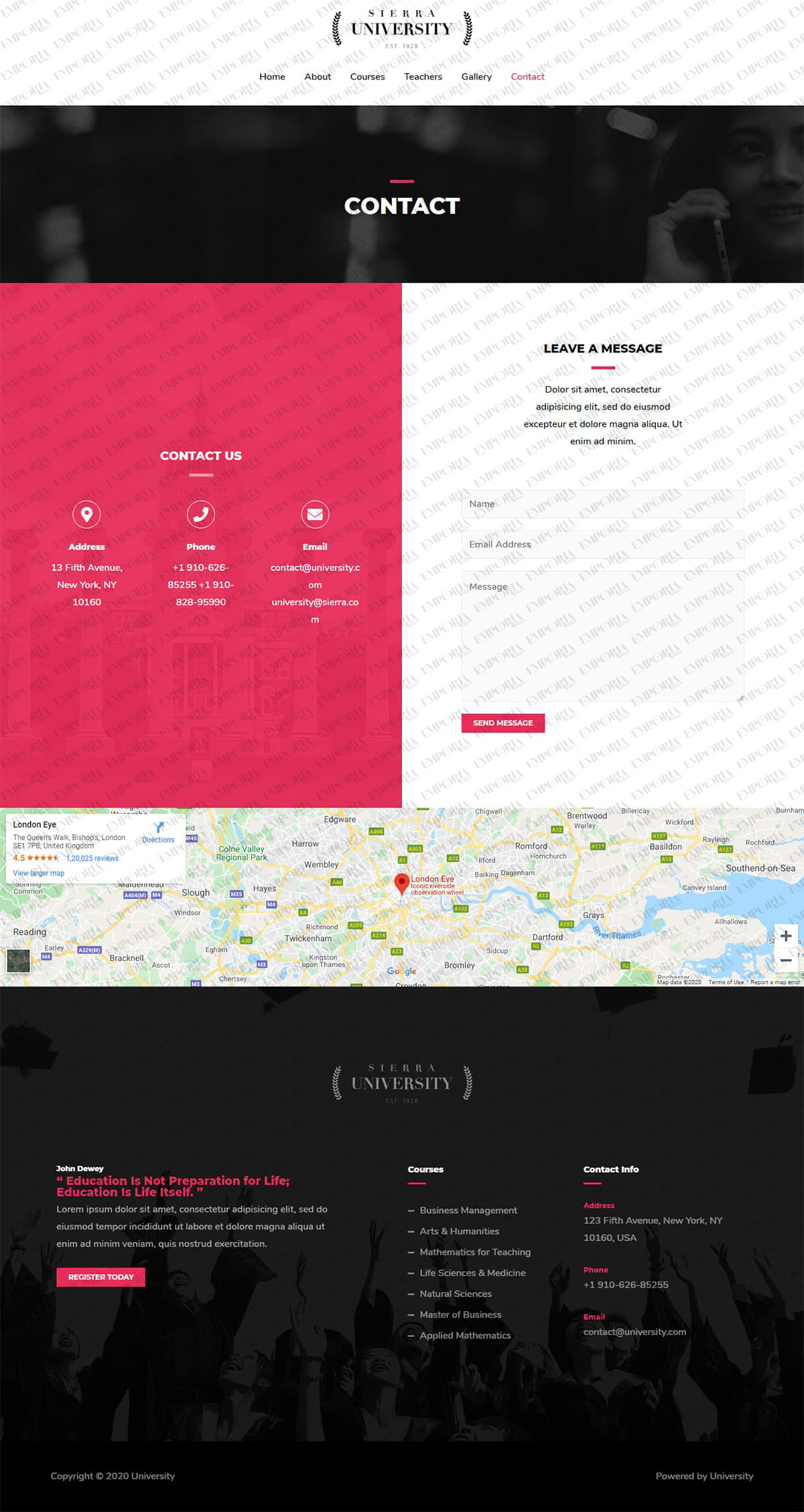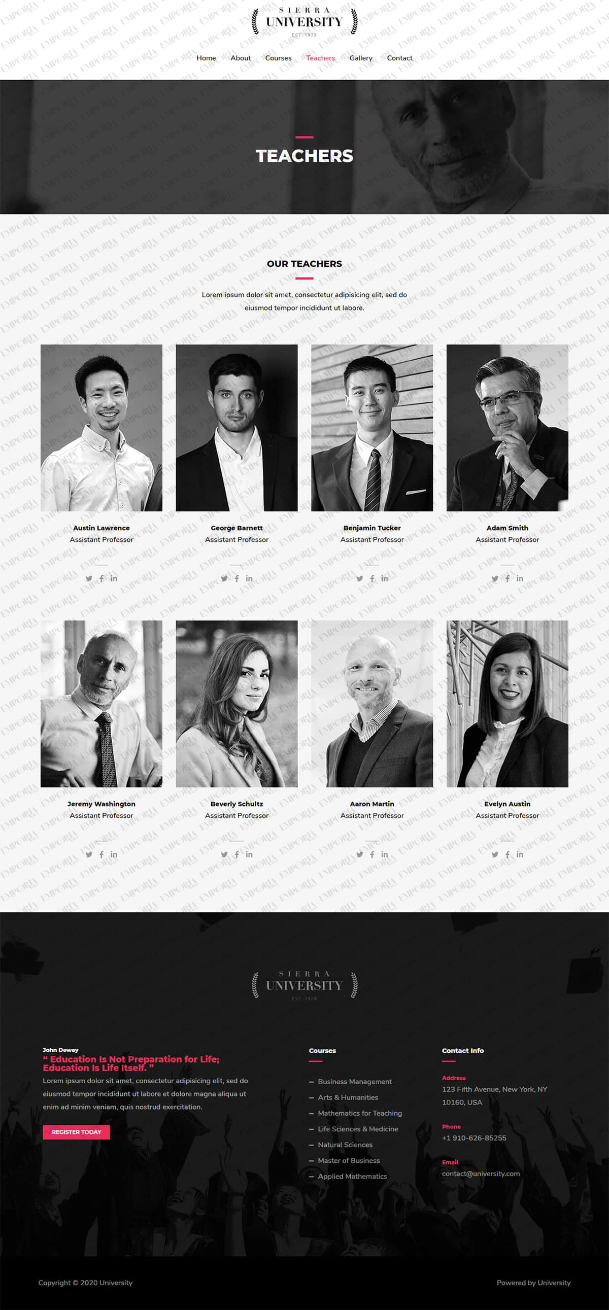 The rest of the template is fully customizable with flexible content areas, dedicated course and teacher pages and the opportunity to move, add or change anything you see on the page.