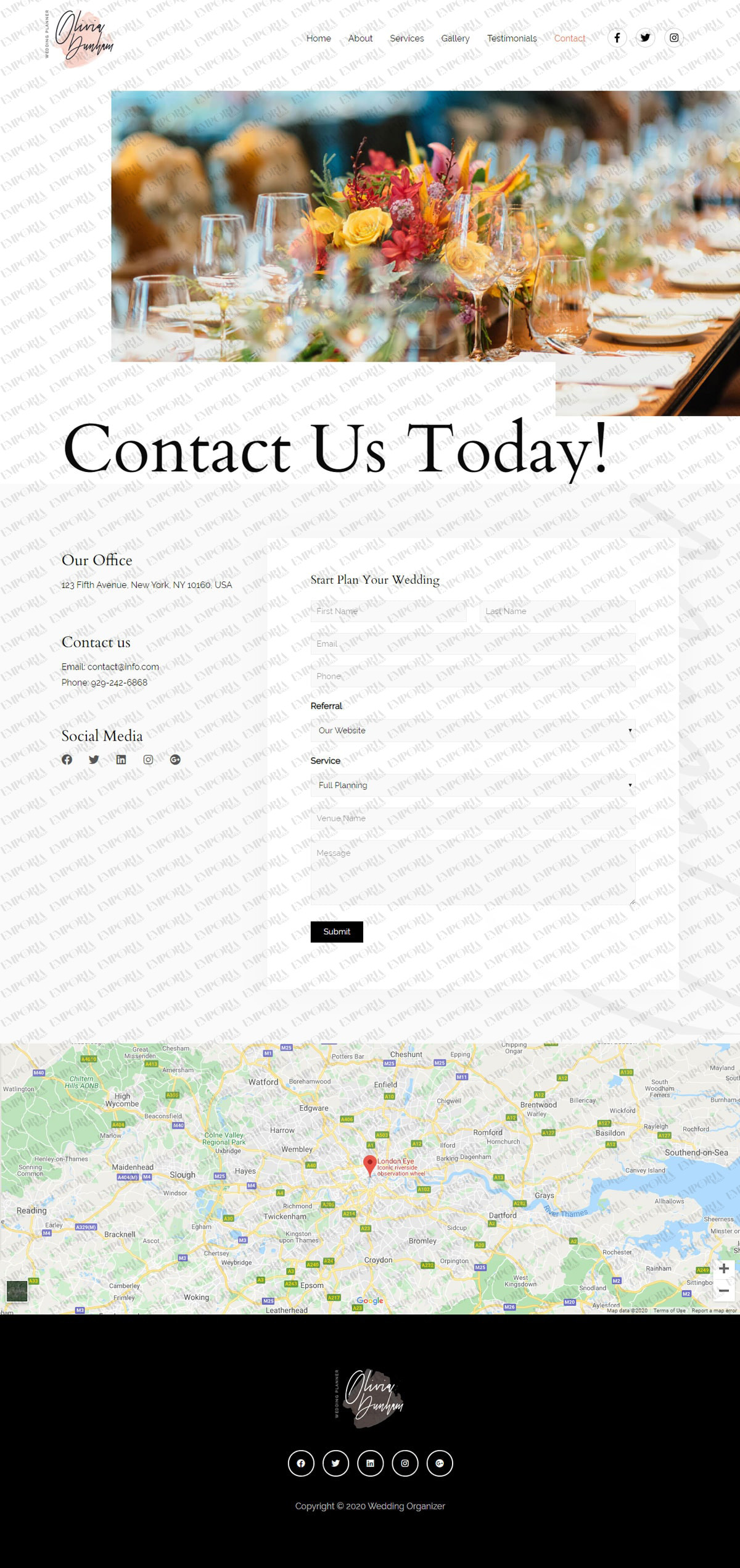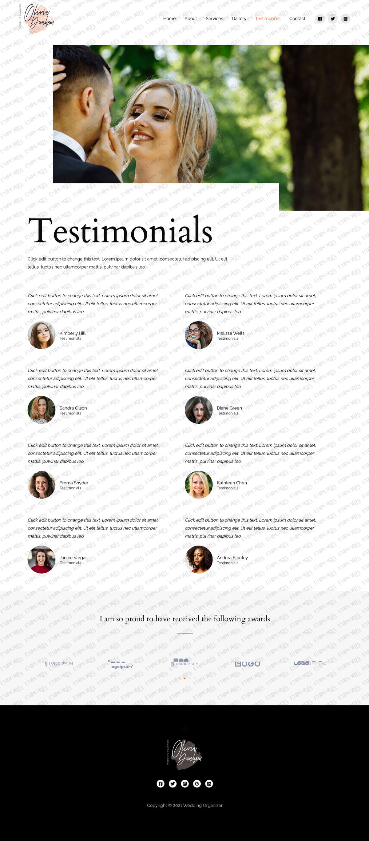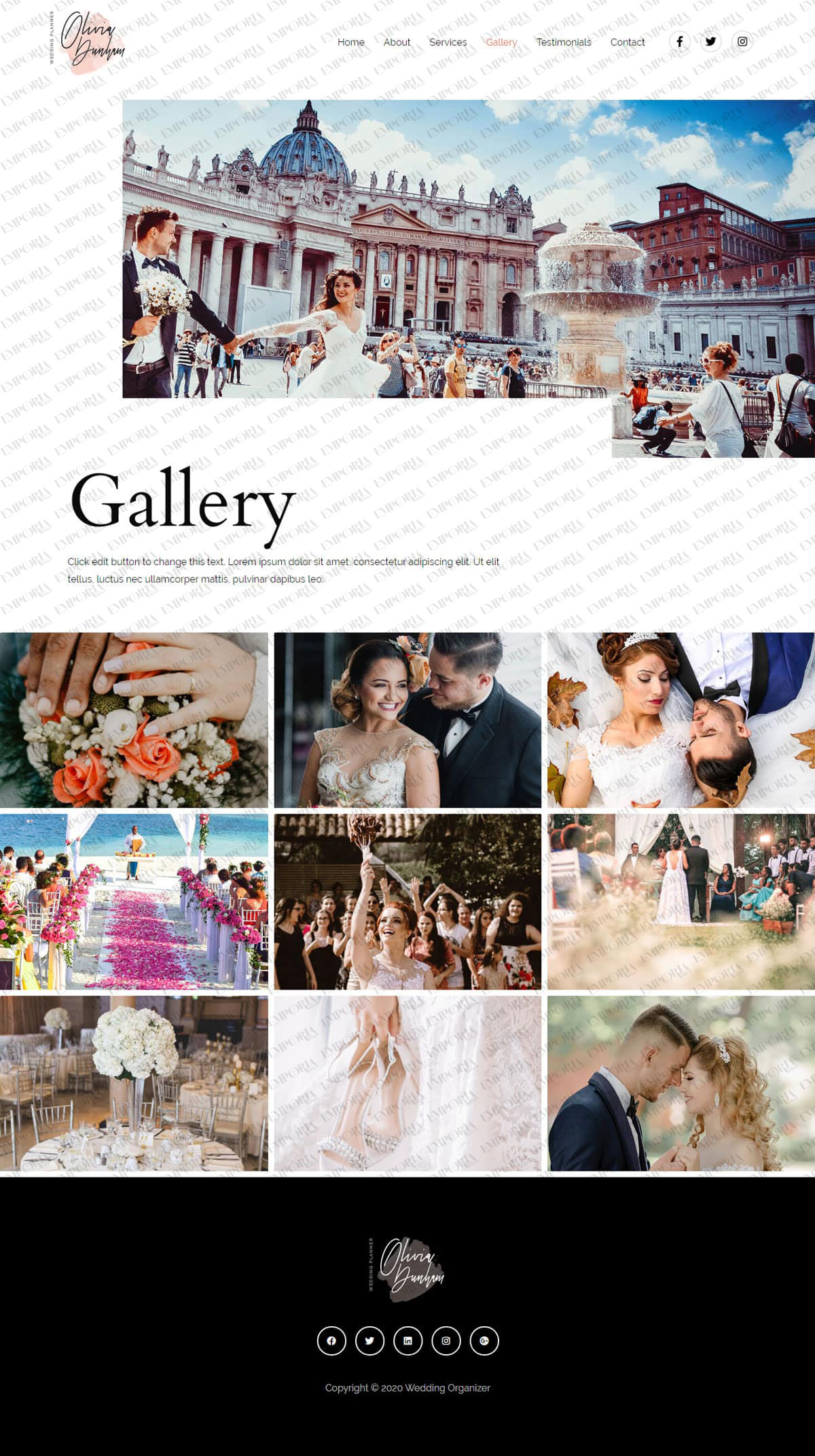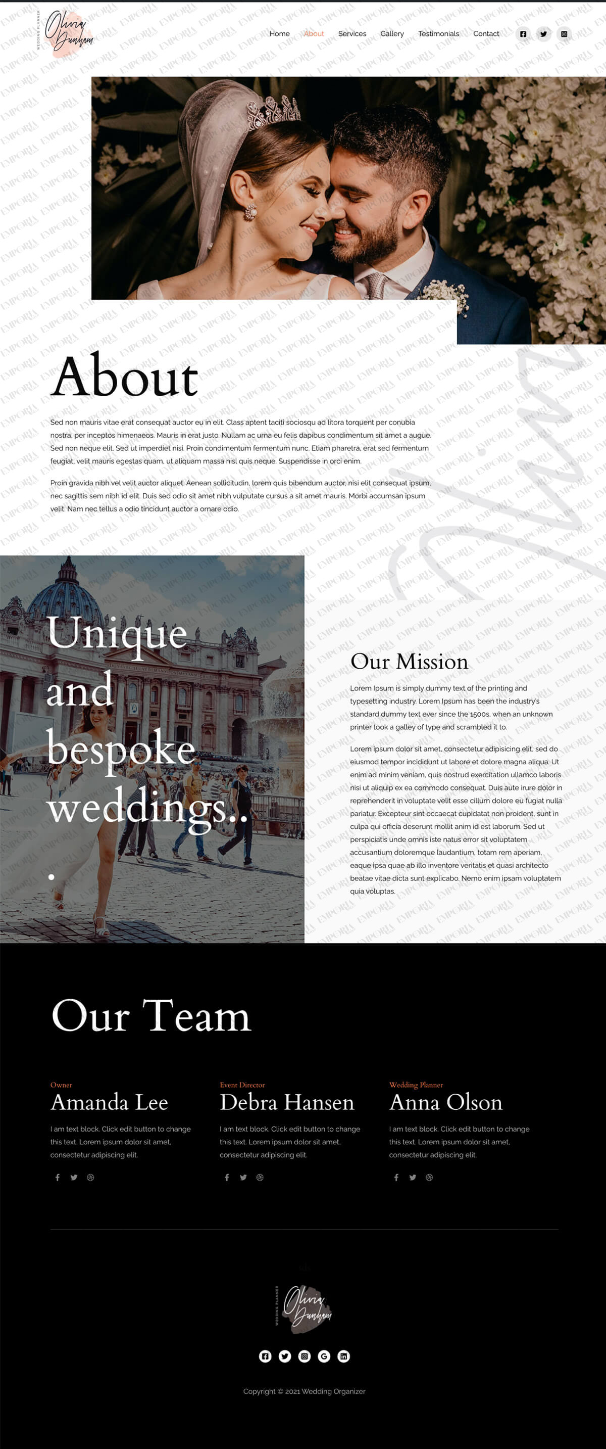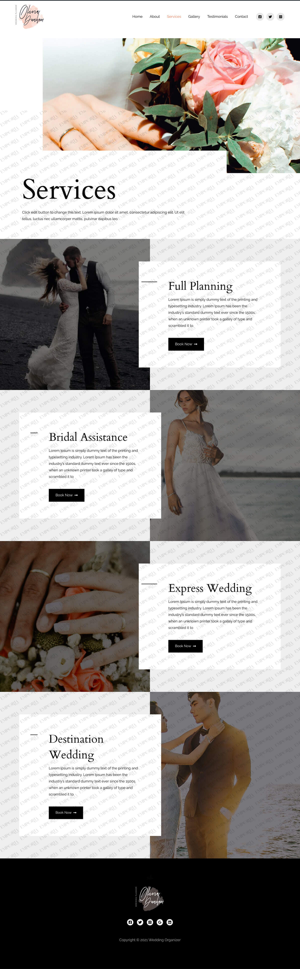 The Wedding Organizer template has a romantic feel that’s balanced with a business layout to combine the two things visitors want to see. It’s light, welcoming and charming in equal measure.