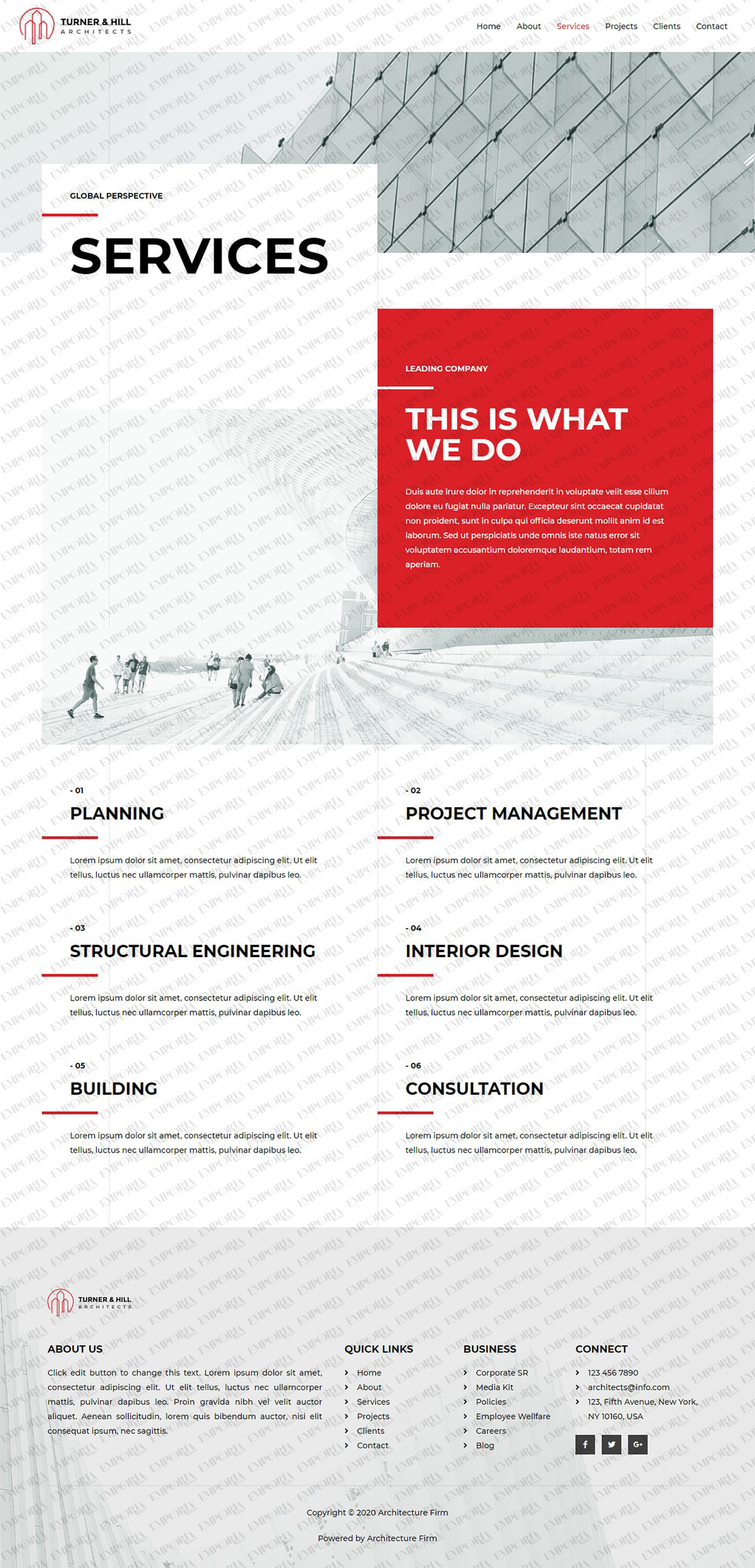 The Architecture Firm template has a stylish feel with light grayscale design, borderless content areas and some nice black and white images. It’s exactly the kind of feel you would expect from this niche.