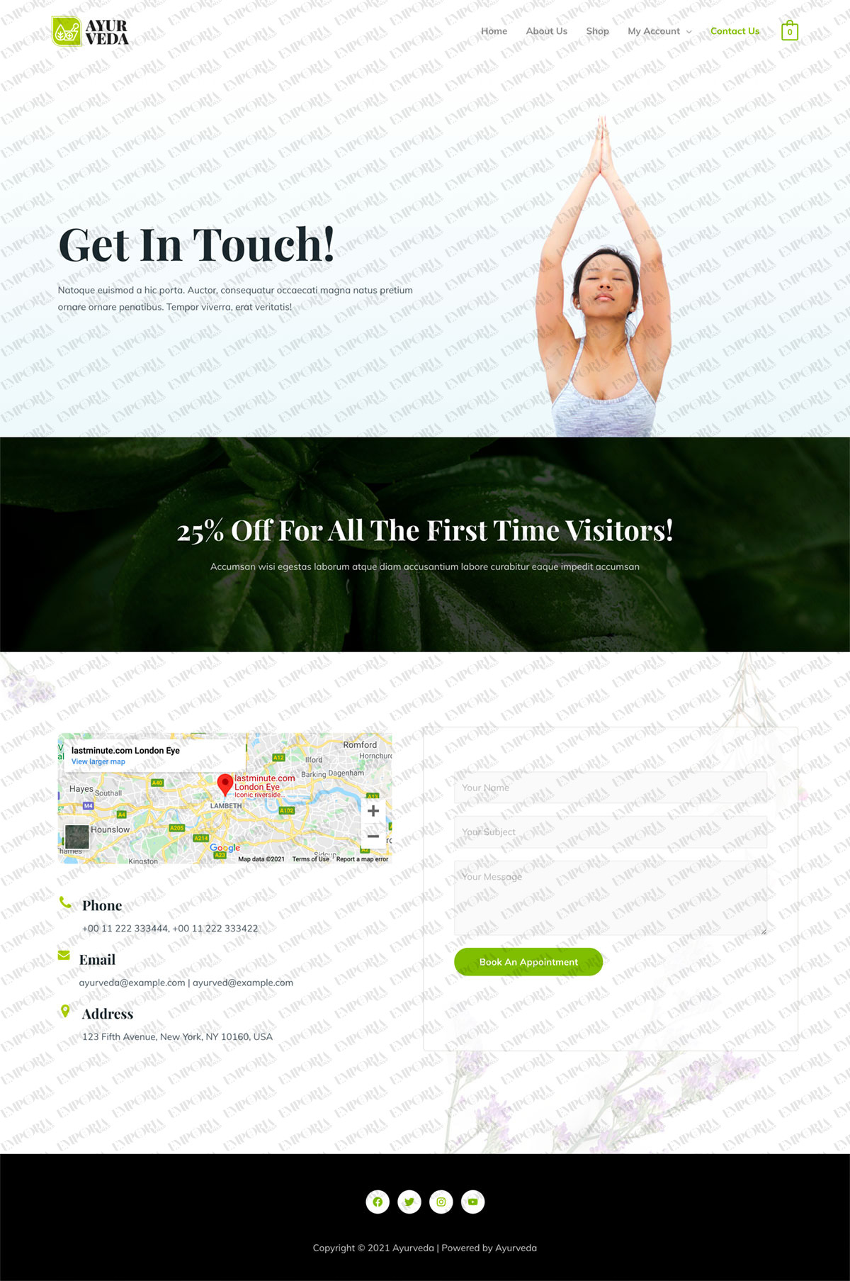 The use of green, while customizable, helps create a feeling of relaxation expected of the niche. All pages combine content areas, whitespace, calls to action, images and content to help engage. The web template can integrate seamlessly with WooCommerce to create a fully working online store too!