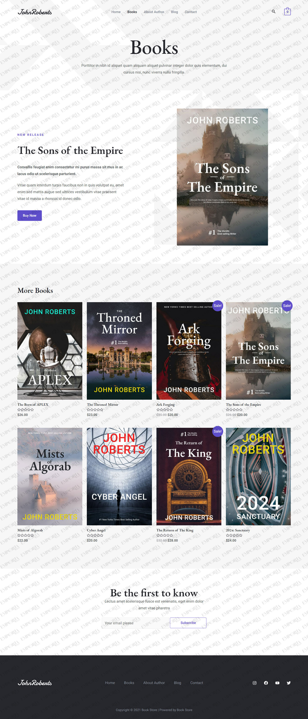 The template integrates seamlessly with WooCommerce so you can sell digital downloads or physical books from the site. There are customizable content areas throughout and a range of calls to action, image options, testimonials and review options to include if you want.