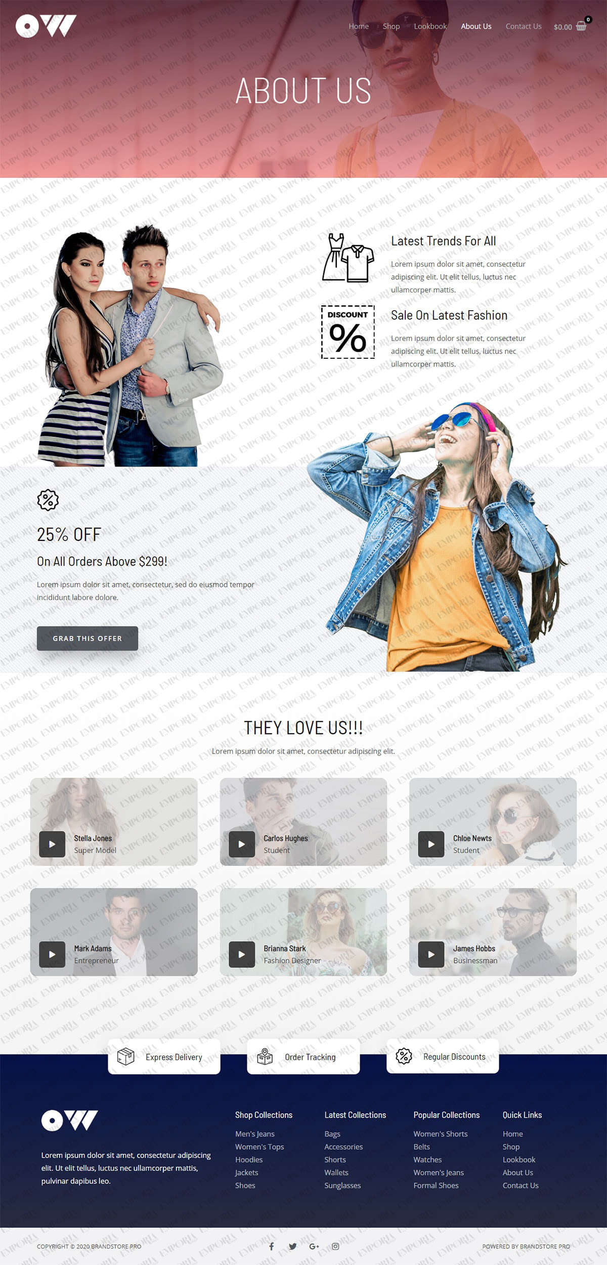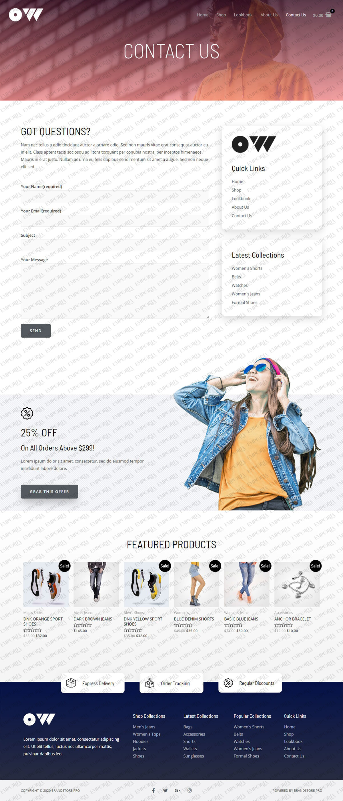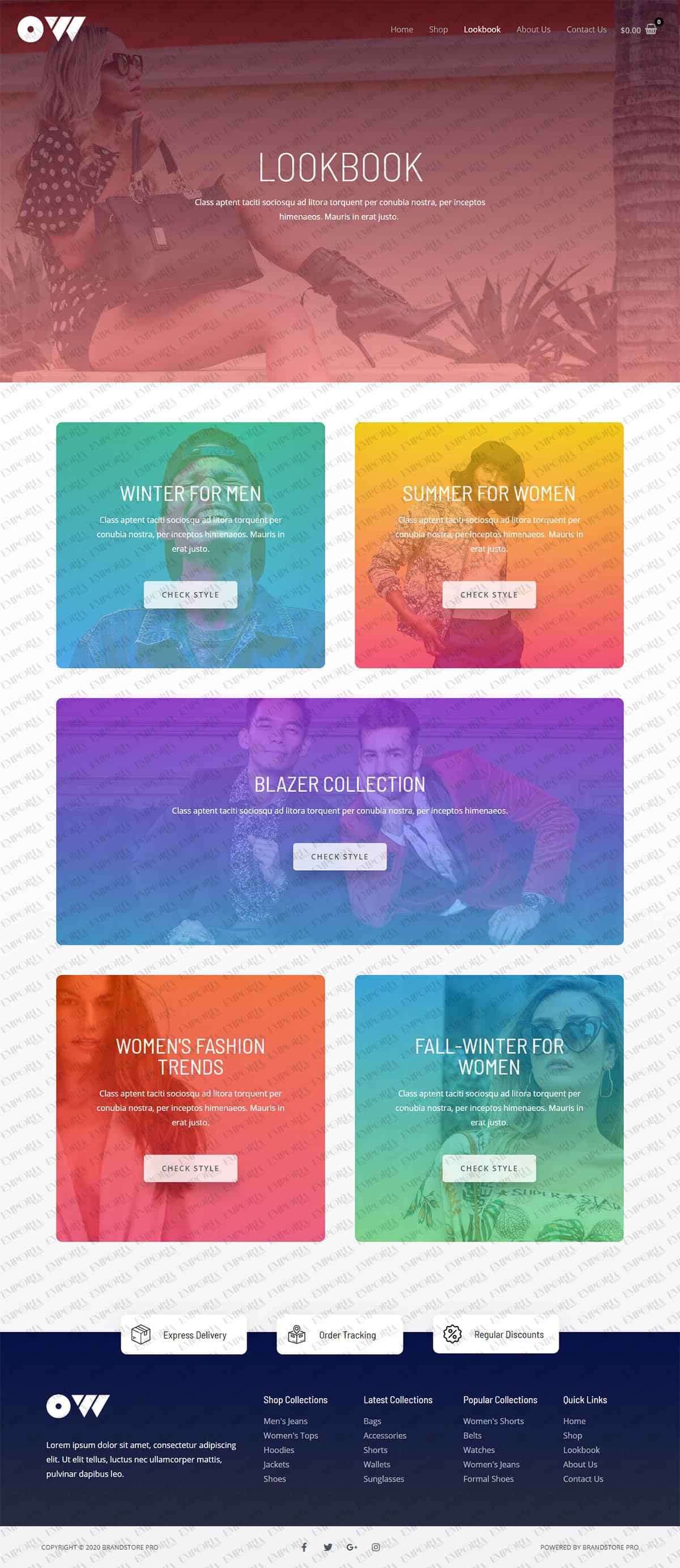 The Brandstore Pro template is a strong eCommerce design that provides a full screen slideshow to show off your latest products. The homepage then opens out into colorful product sections balanced by whitespace.
