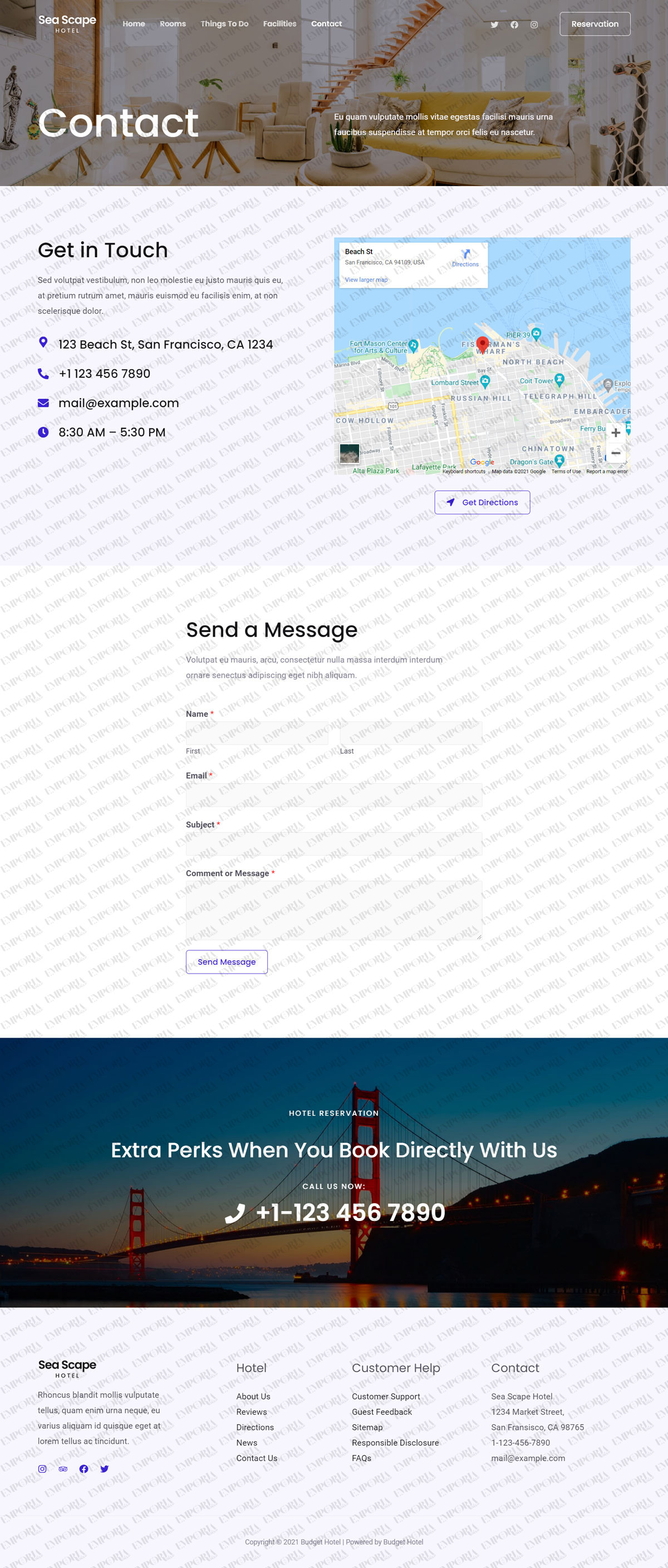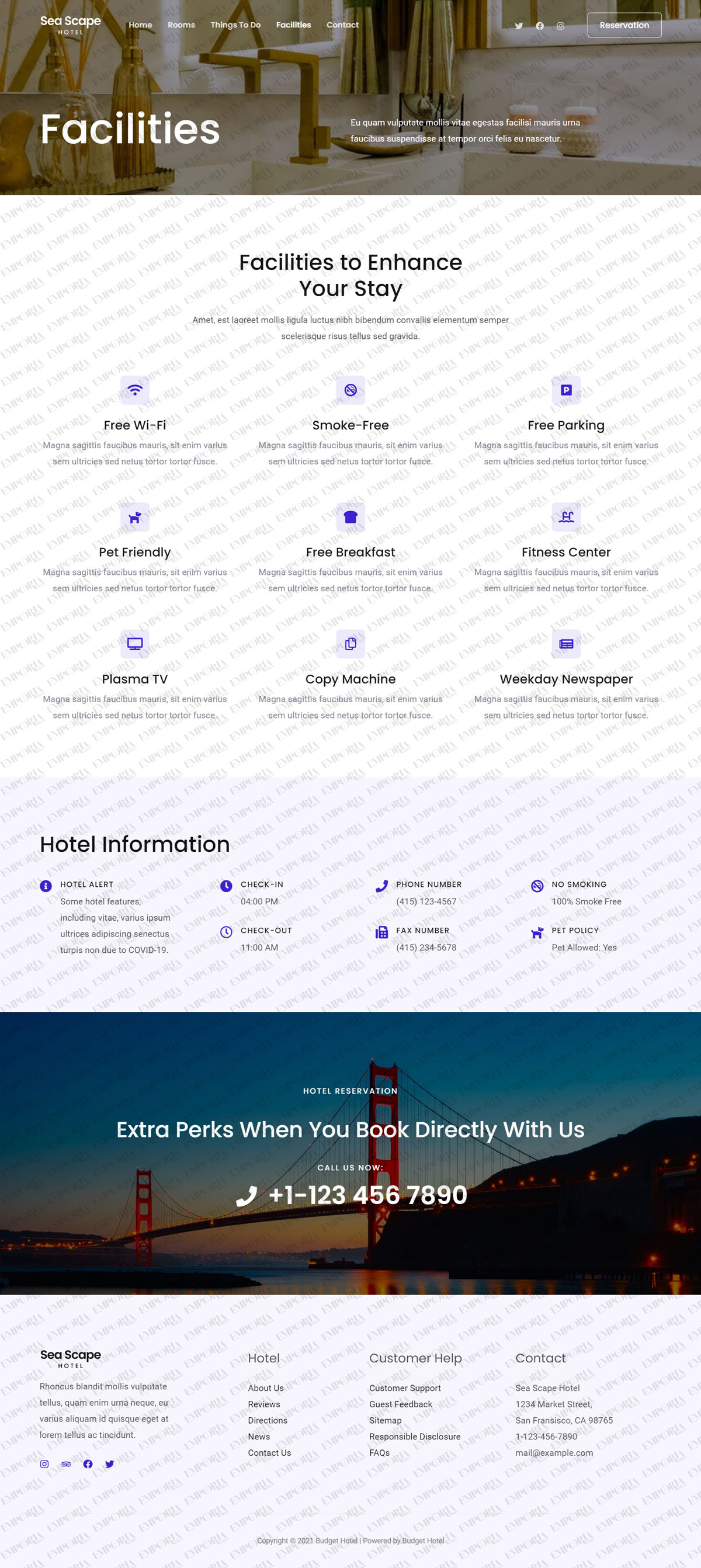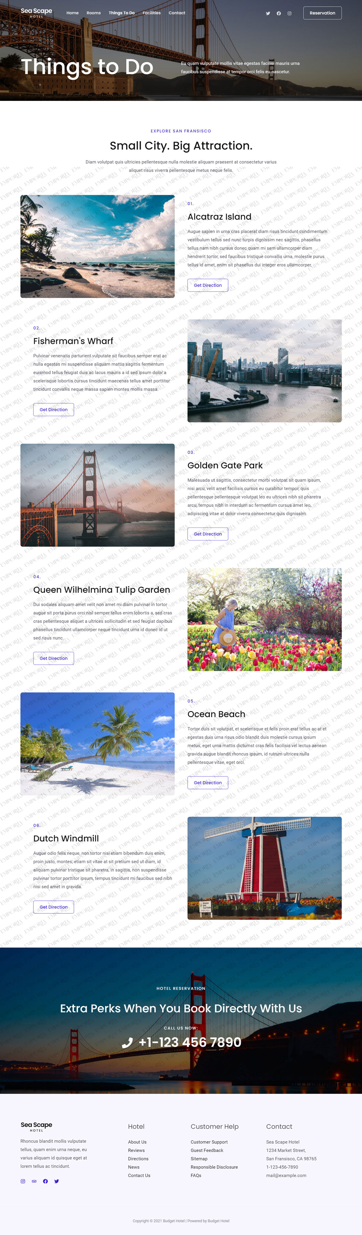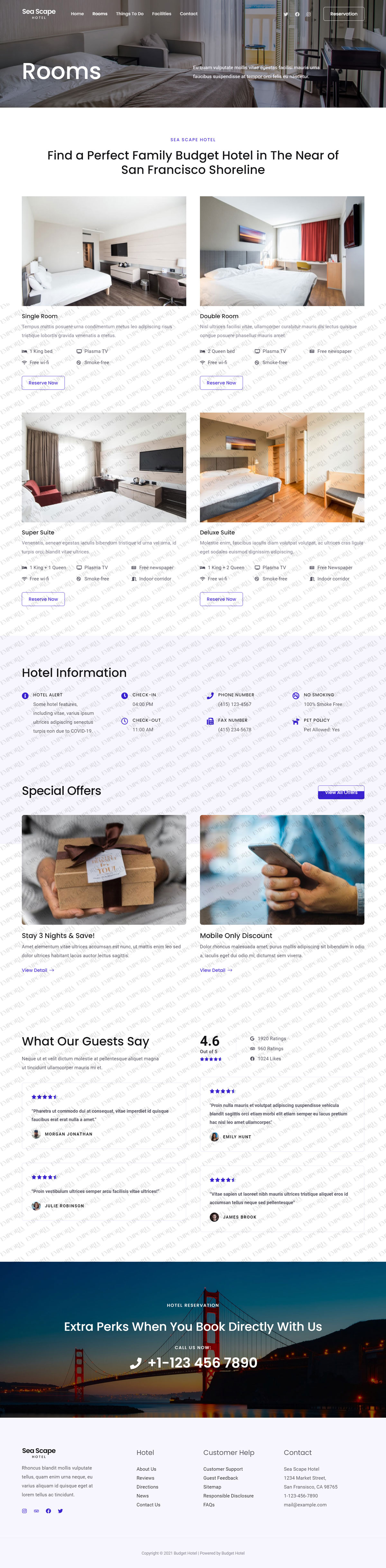 Whether you’re taking your hotel business online or revamping your existing website, the Budget Hotel template is a must-have. The elegantly designed template has all the elements to build a professional and engaging hotel website.