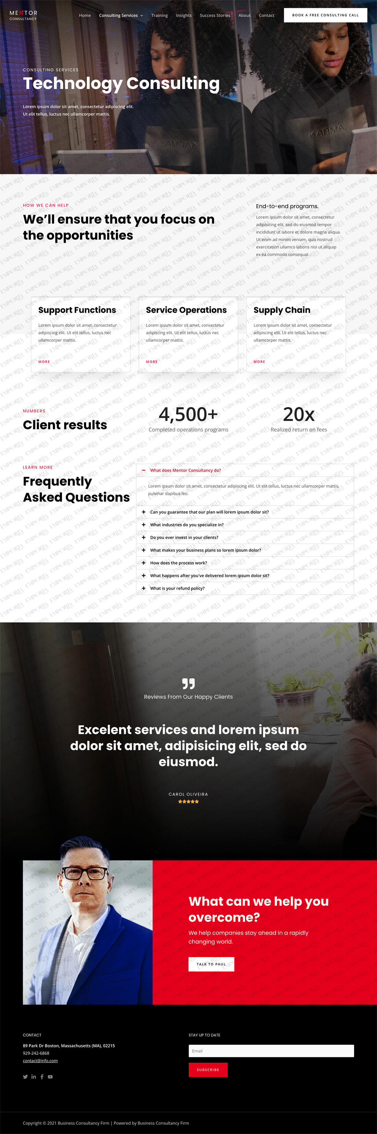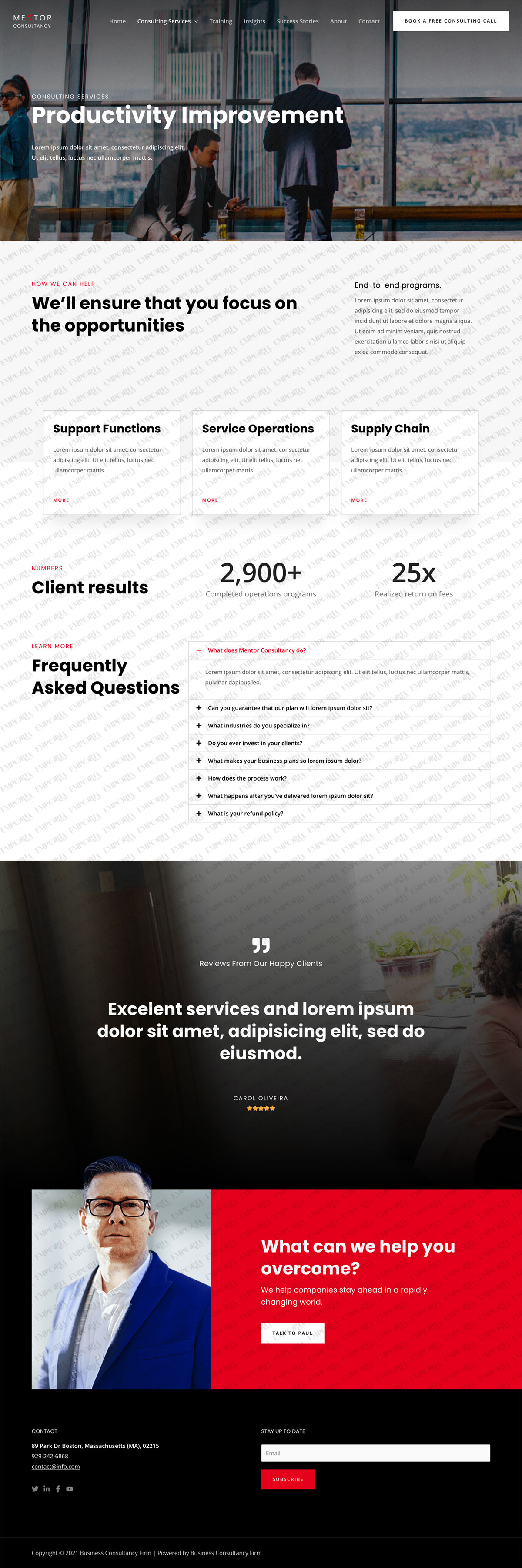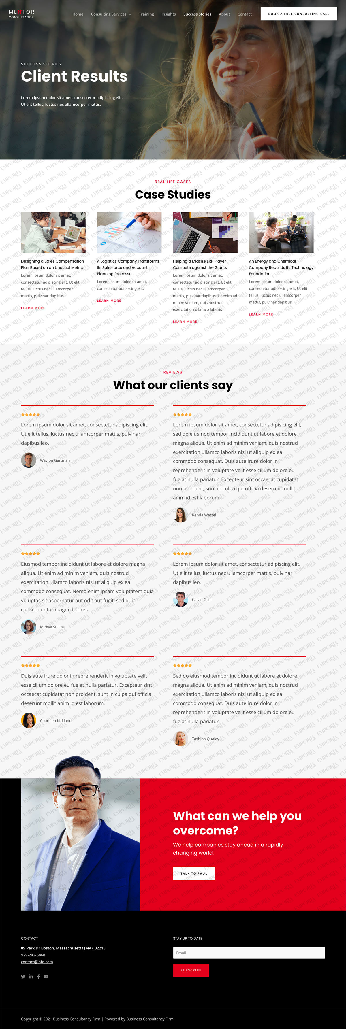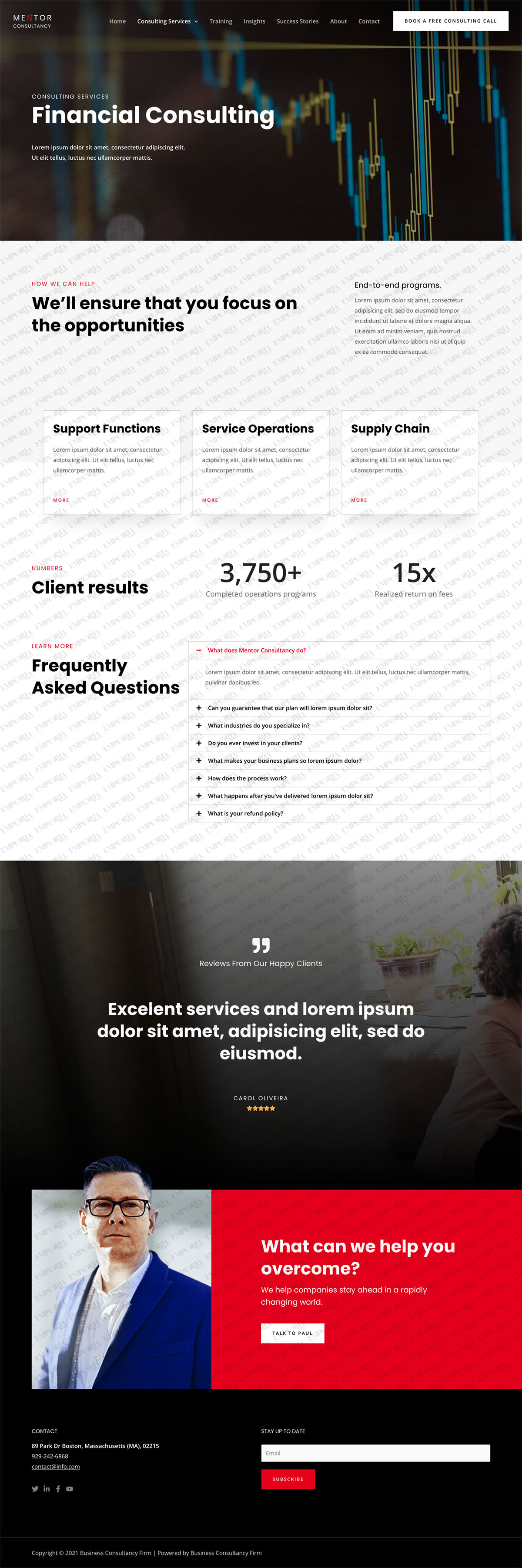 • A ‘book a free consulting call’ call to action button is integrated into the top menu