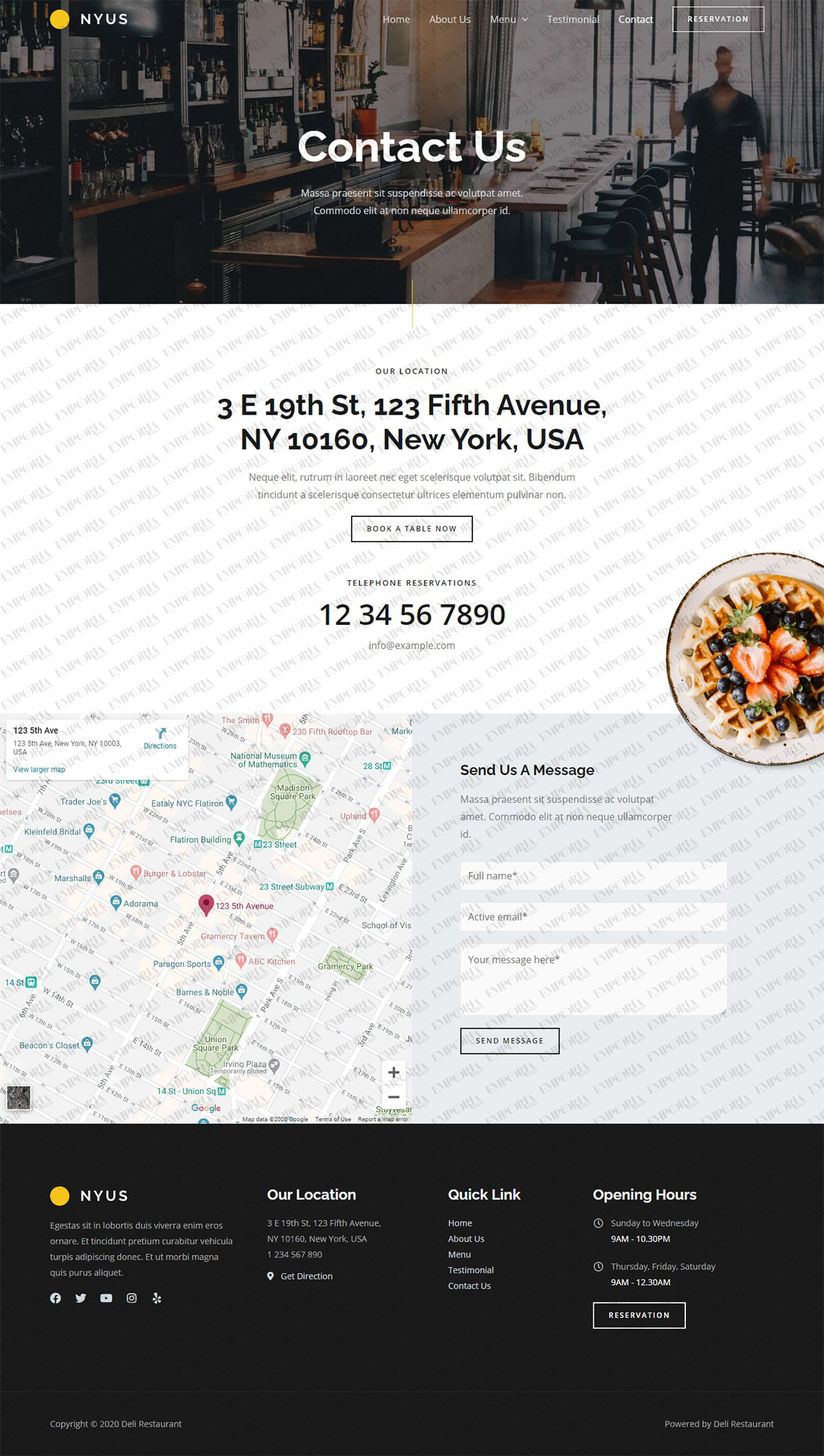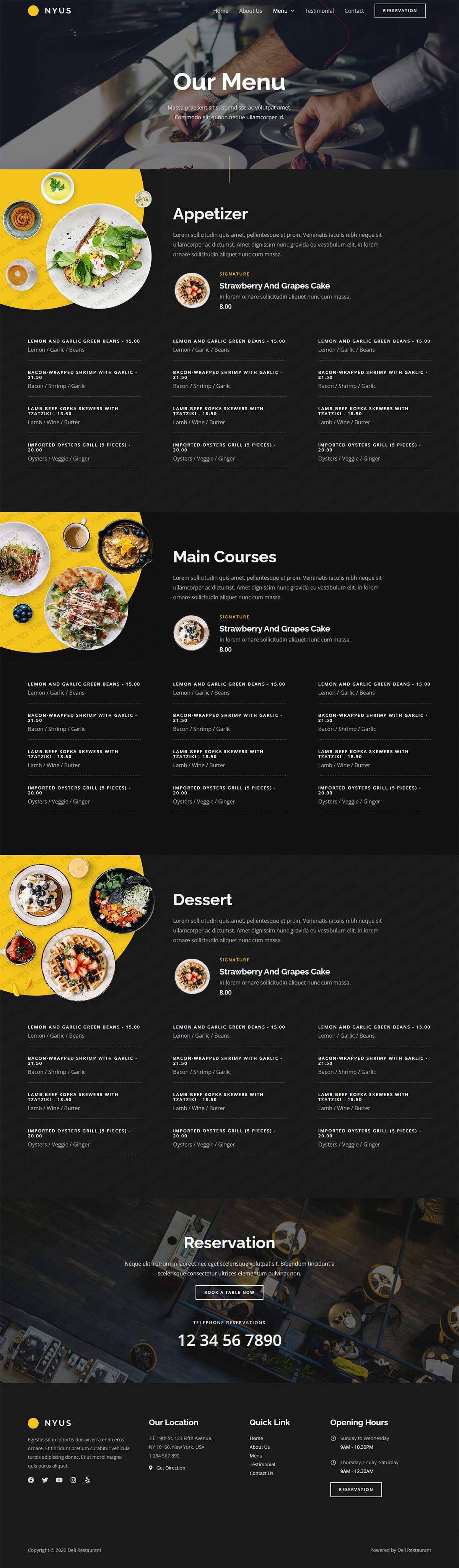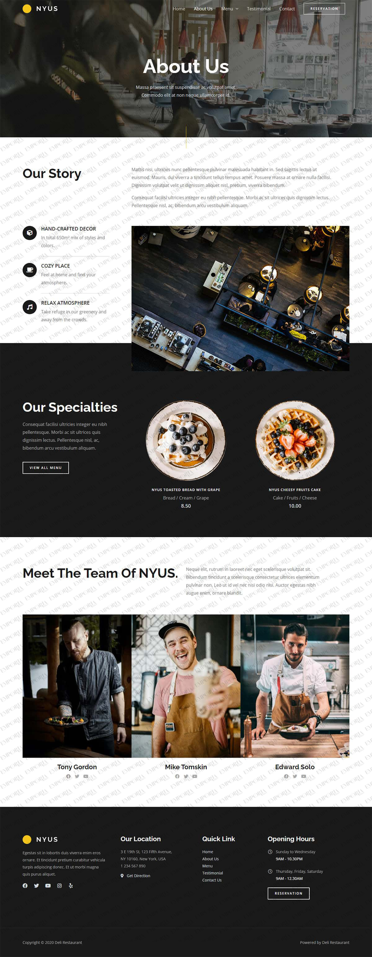 The template includes a menu section and flexible content sections you can personalize along with the extra pages you may need to continue telling your story. It’s a well-designed website template with everything a deli needs.