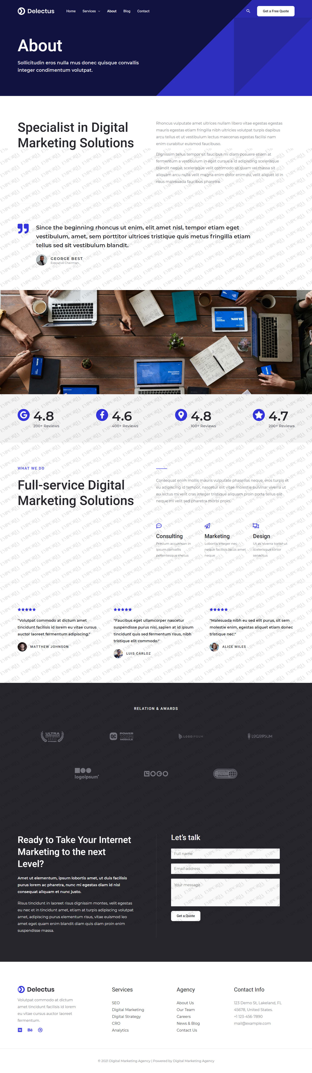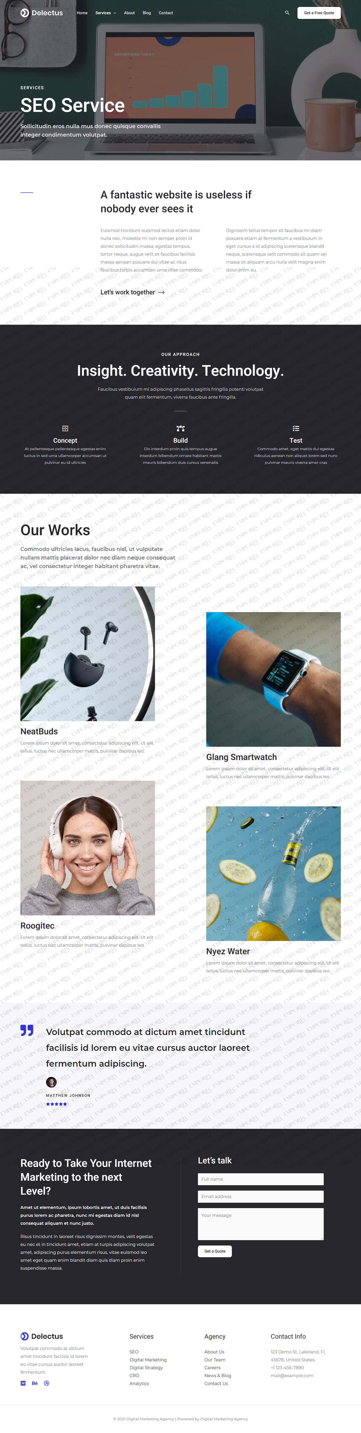 Our Digital Marketing Agency template does that. The template is perfect for your agency website, from done-for-you templates showcasing all your individual services to customer reviews.